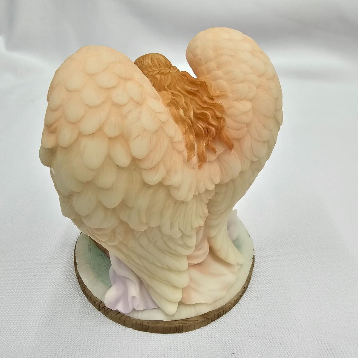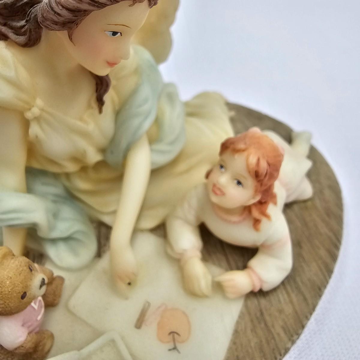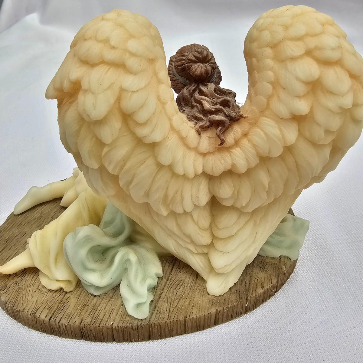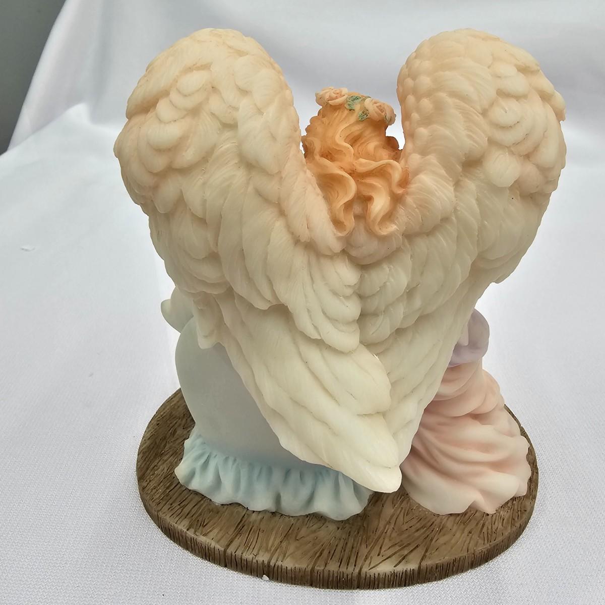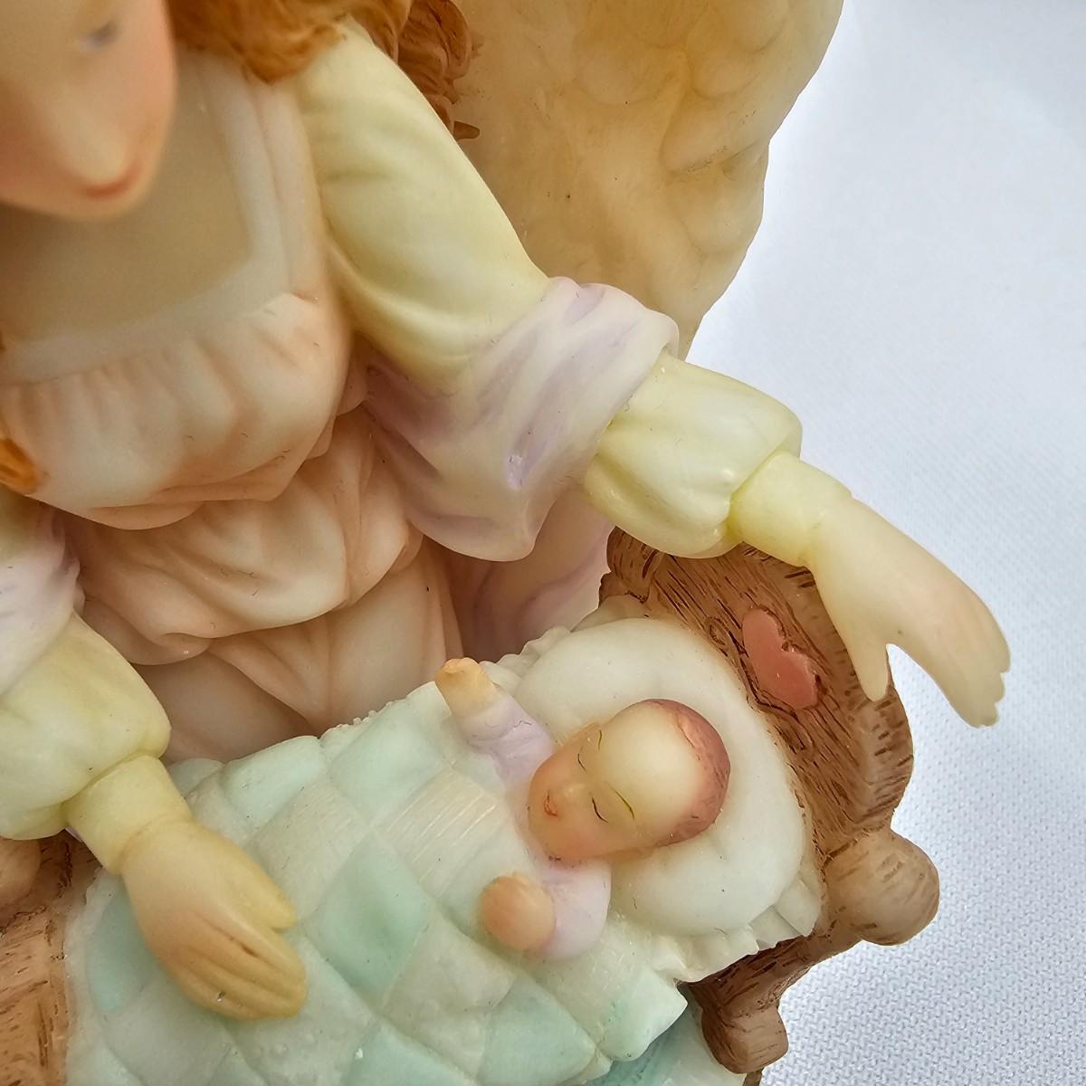 Five charming sculptures by Roman depicting angels guarding a child as she grows. Meticulous detail on faces and bodies and the teddy bear in each scene shows the age. Shown here are newborn, years 1, 2, 3, and 5. Tallest item is 5.5"H. All in original boxes. Info and issue numbers shown on bases of items. See photos for details. Shipping available.
