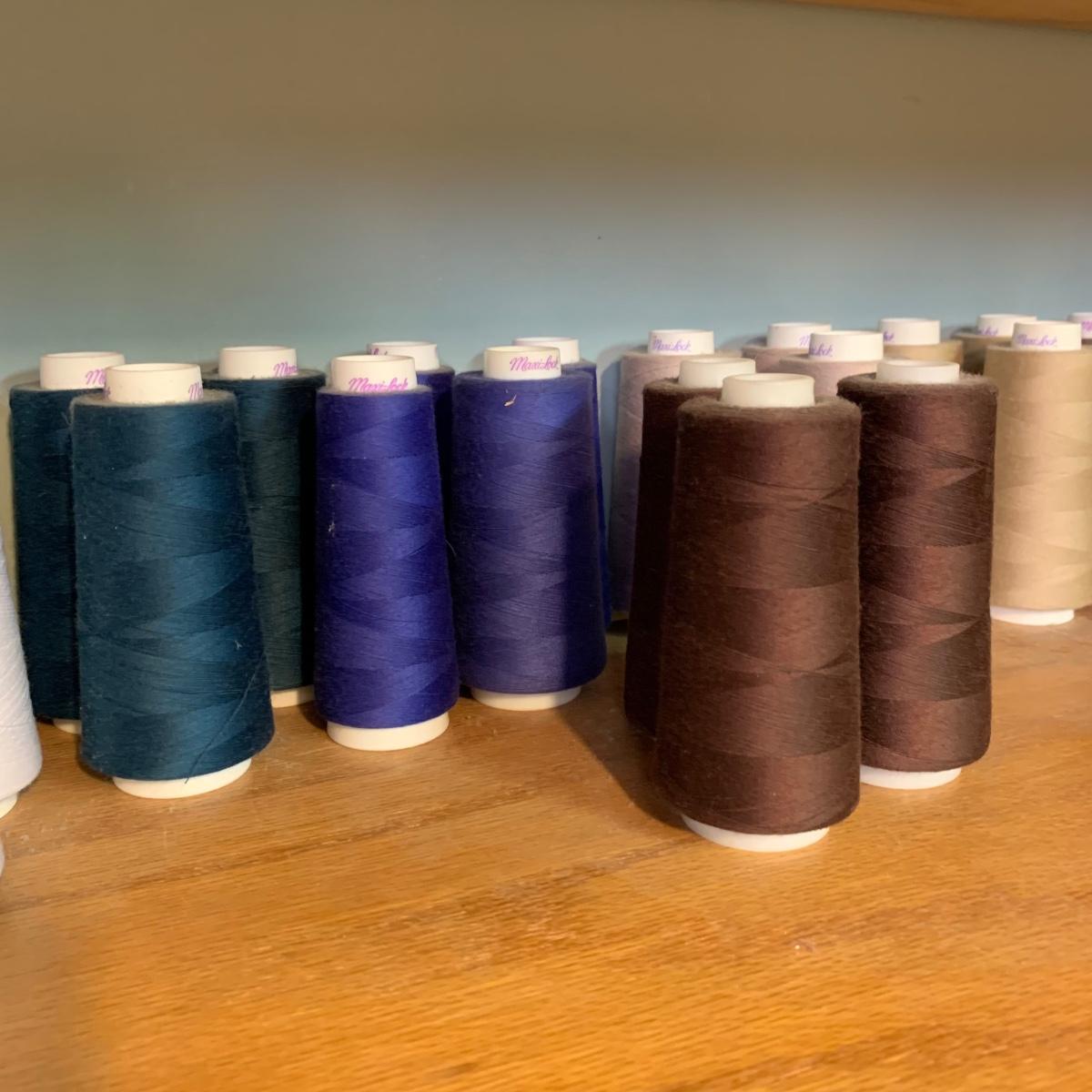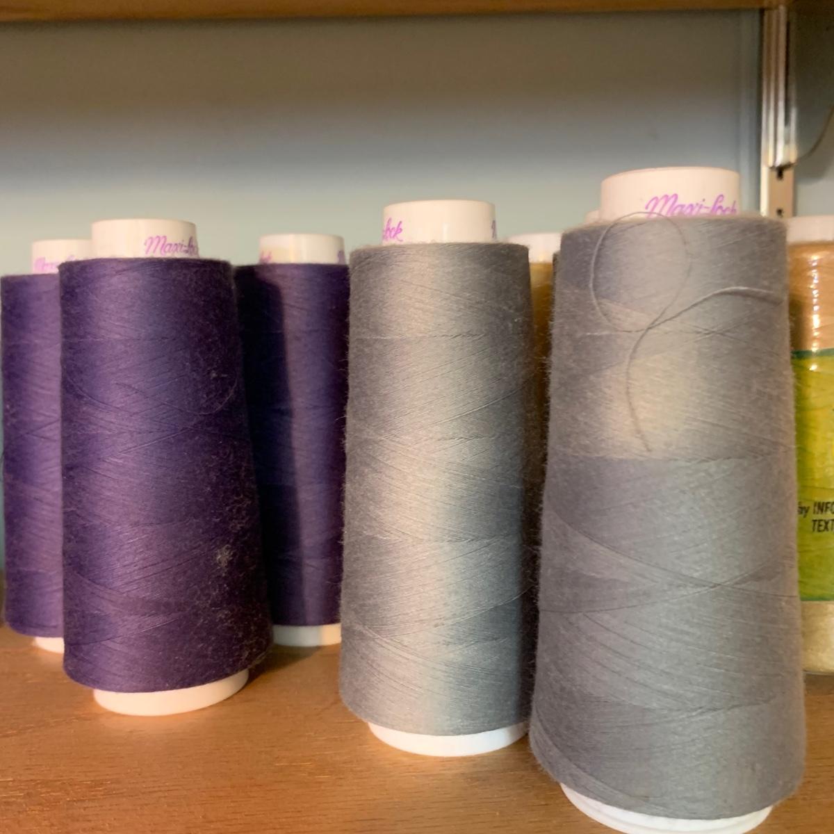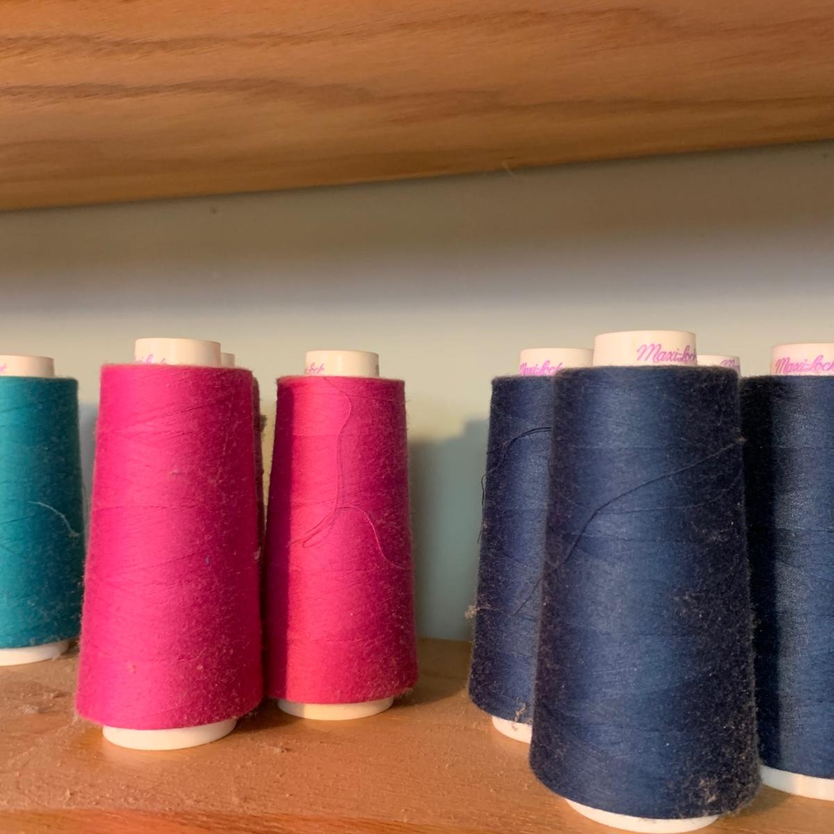 Approximately 100 cone spools of serger thread for overlock sewing. Many different colors are included. Most are unused. Most are 100% polyester Maxi-Lock with 3,000 yards each. Local pickup only.