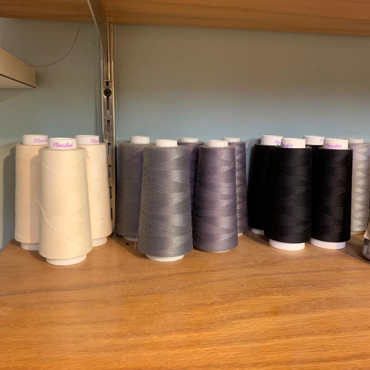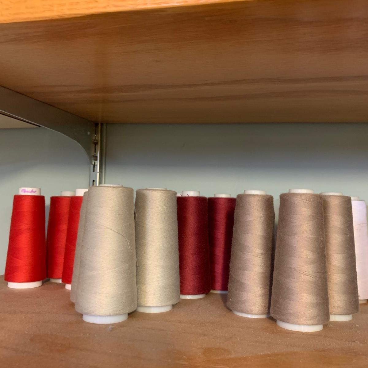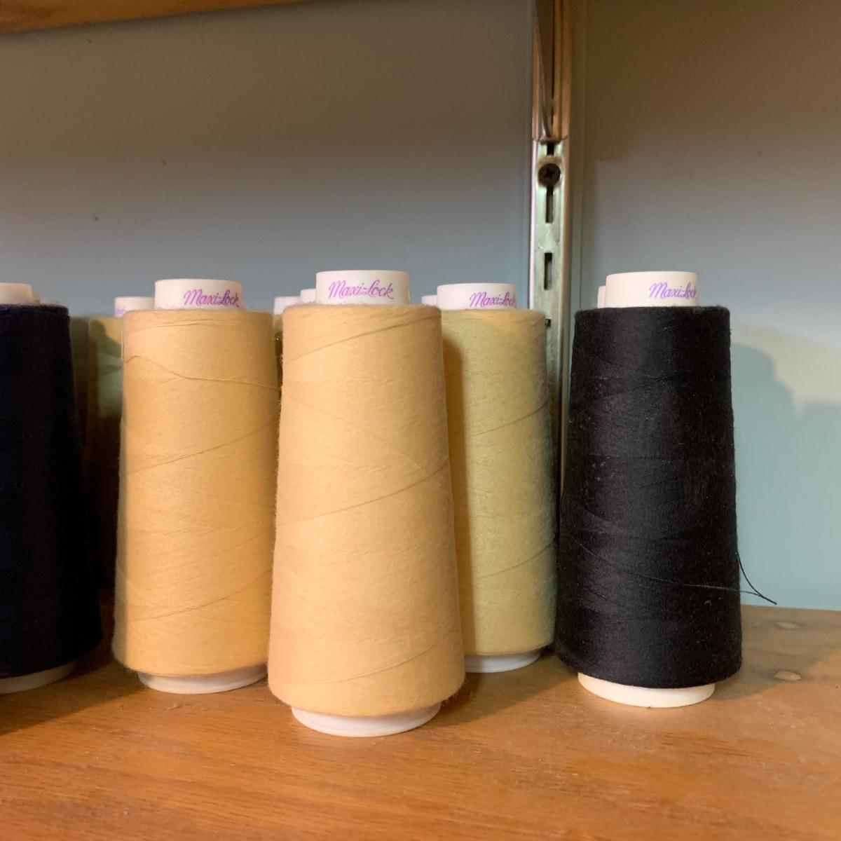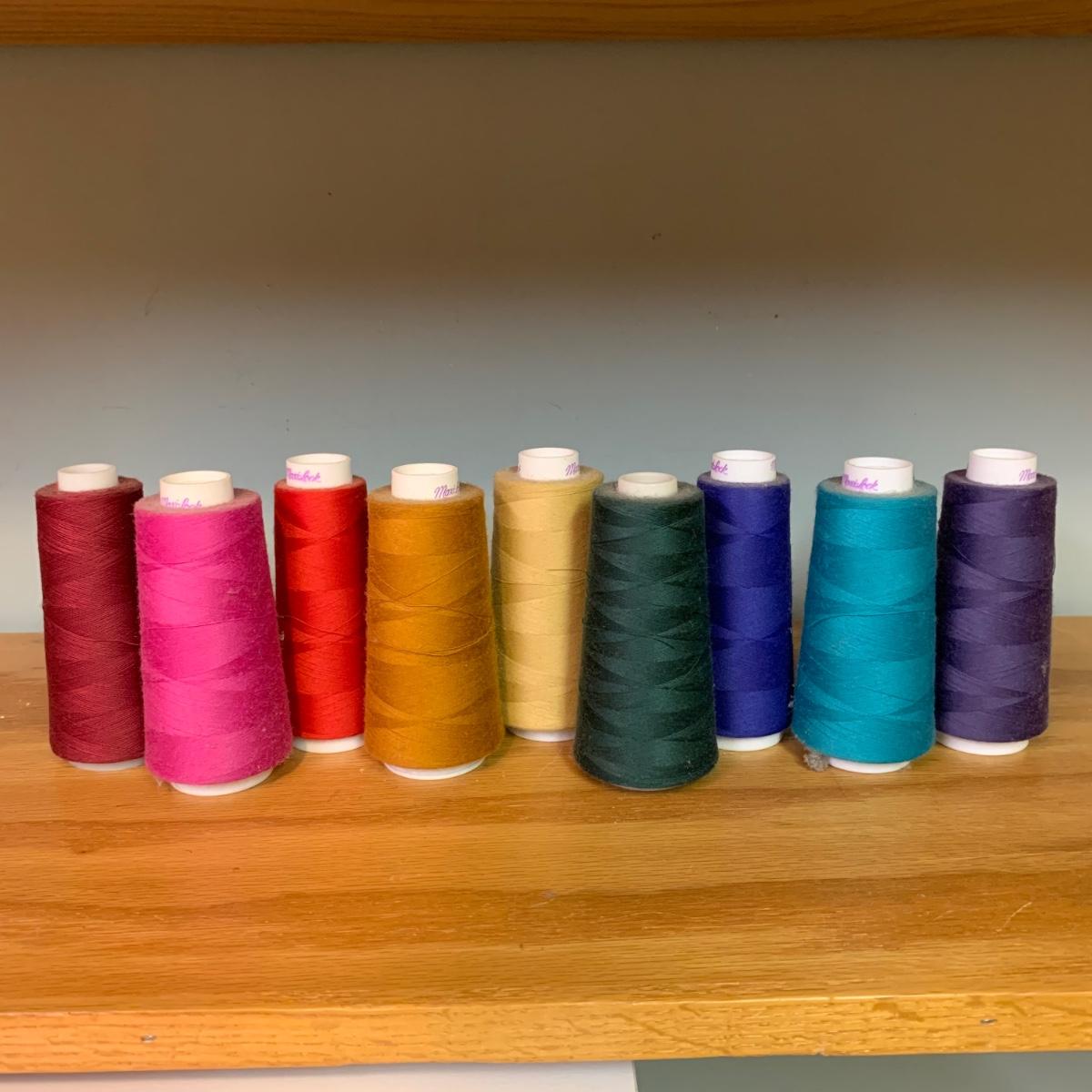 Approximately 100 cone spools of serger thread for overlock sewing. Many different colors are included. Most are unused. Most are 100% polyester Maxi-Lock with 3,000 yards each. Local pickup only.