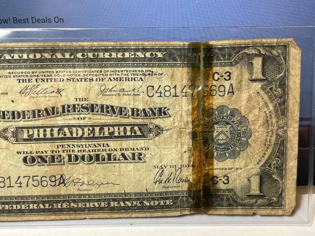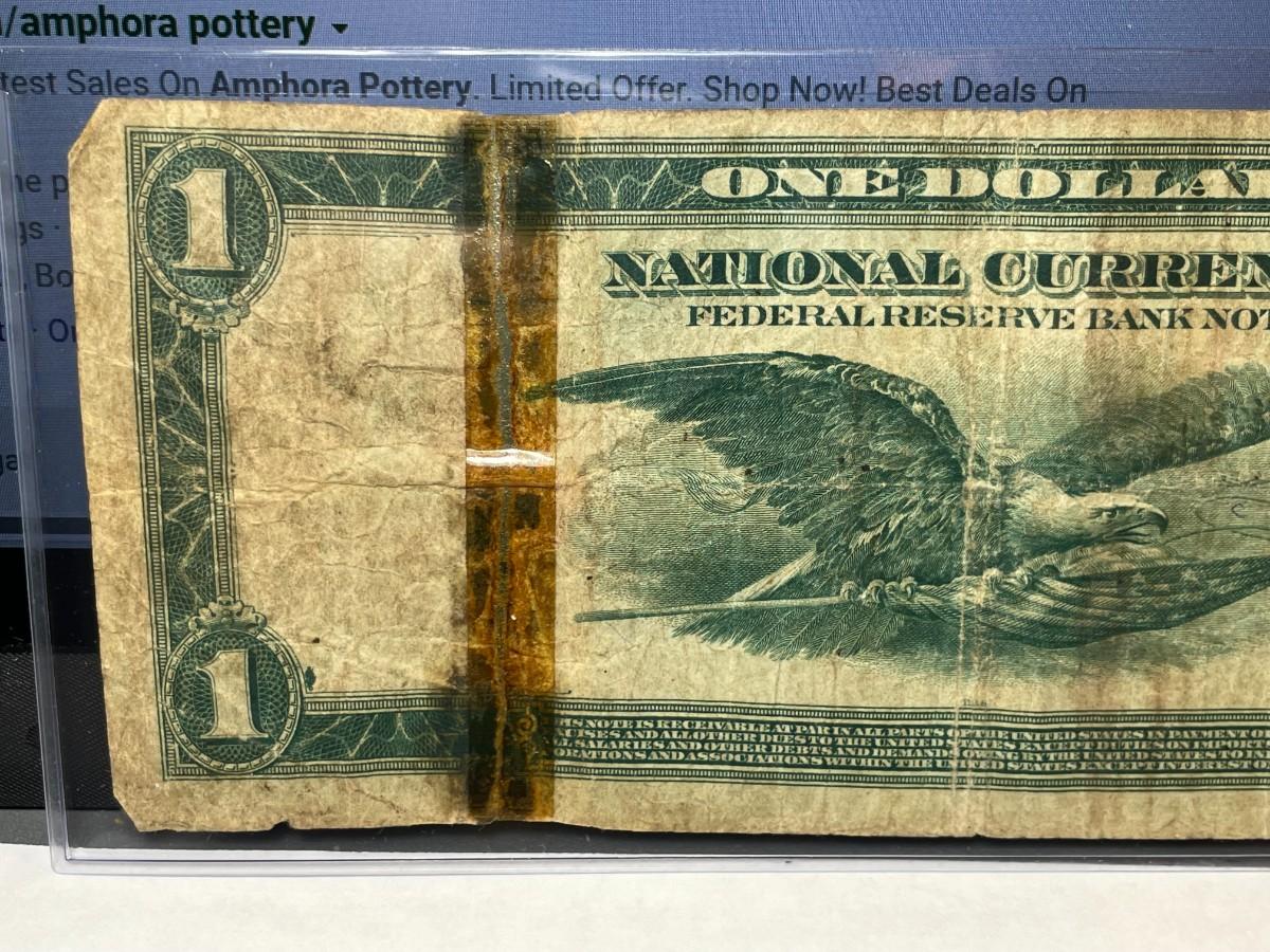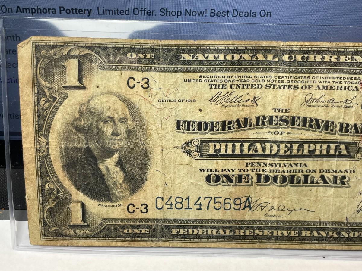 Series of 1918 $1 Philadelphia National Currency Taped in Heavily Circulated Condition as Pictured. FREE DOMESTIC SHIPPING.