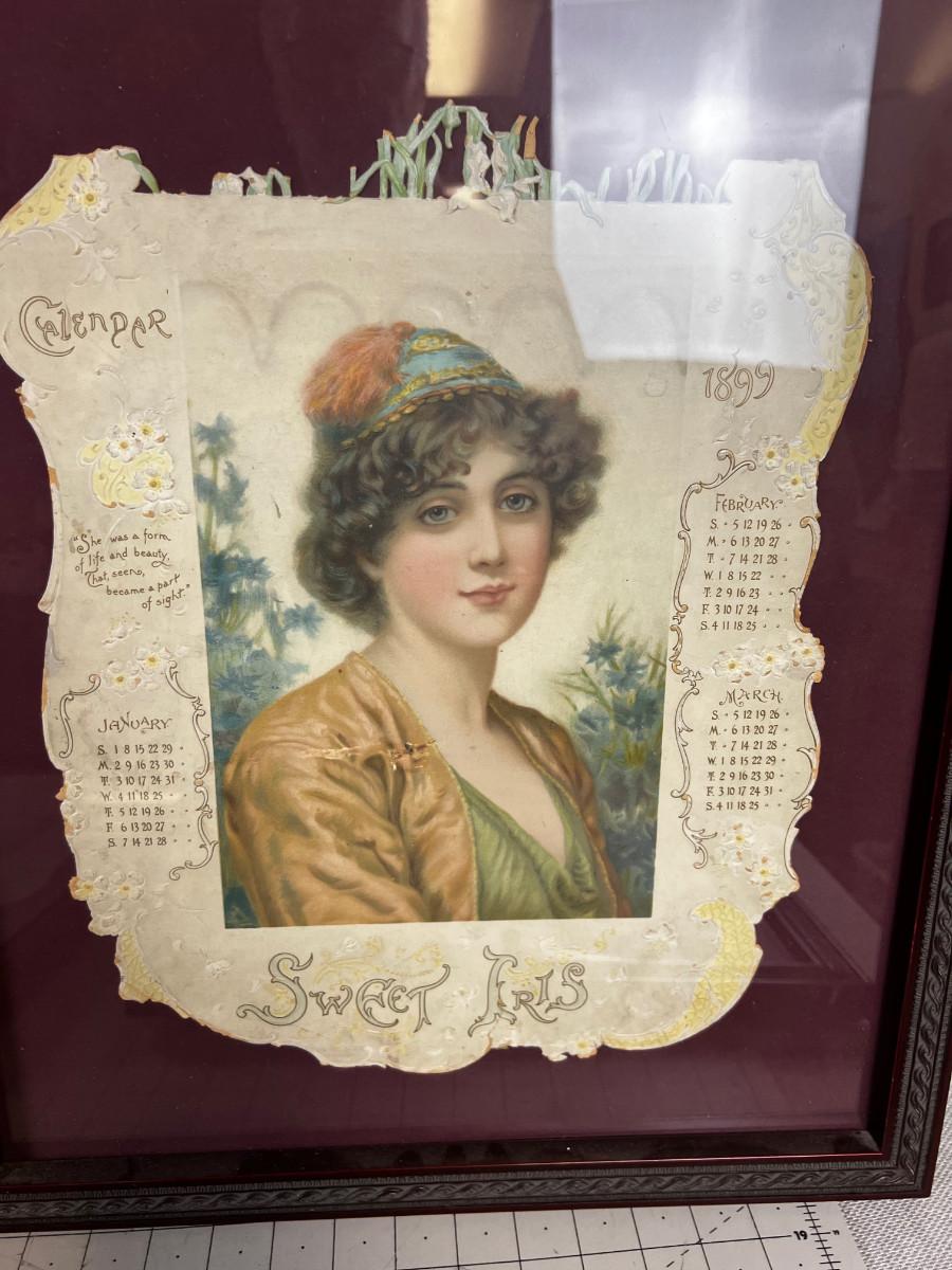 Series of (4) Antique Calendar Sheets FRAMED From 1899 ART NOUVEAU