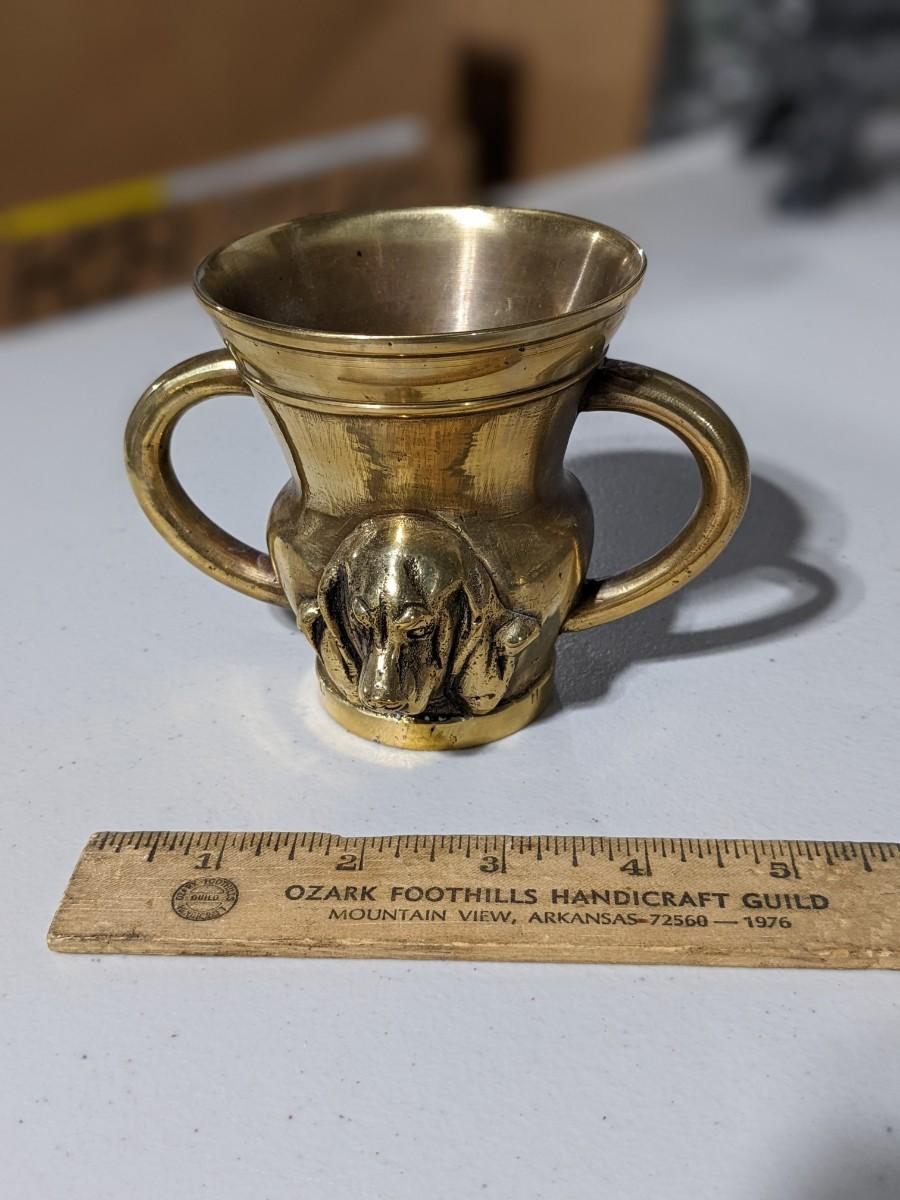 Serious Brass Wine Cooler (?) Cup with Bloodhound Dog