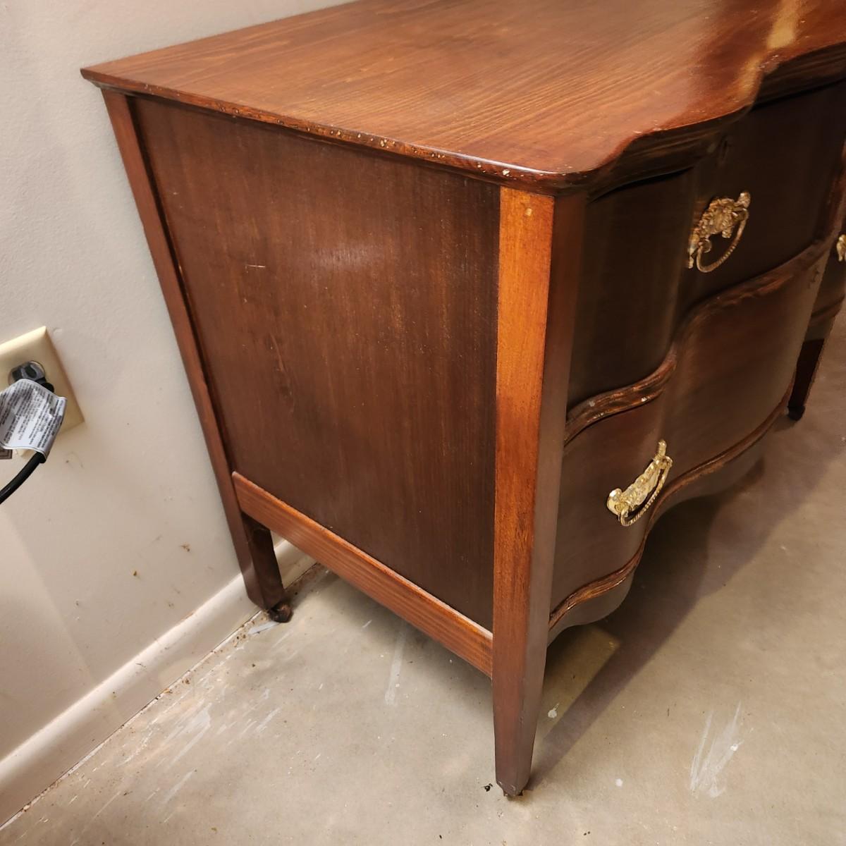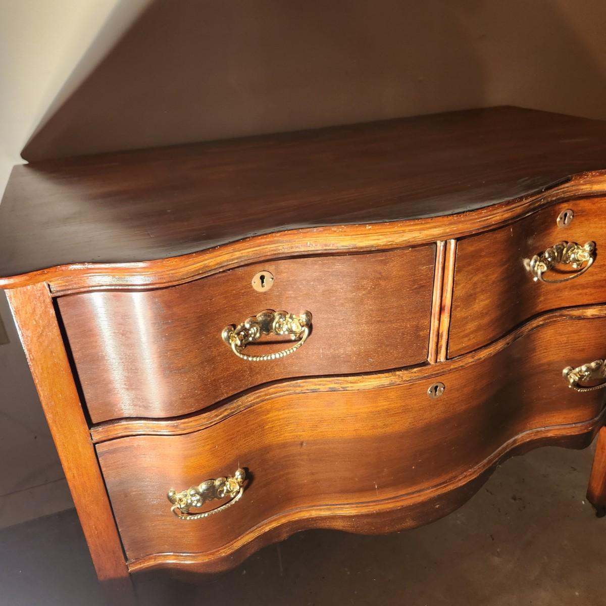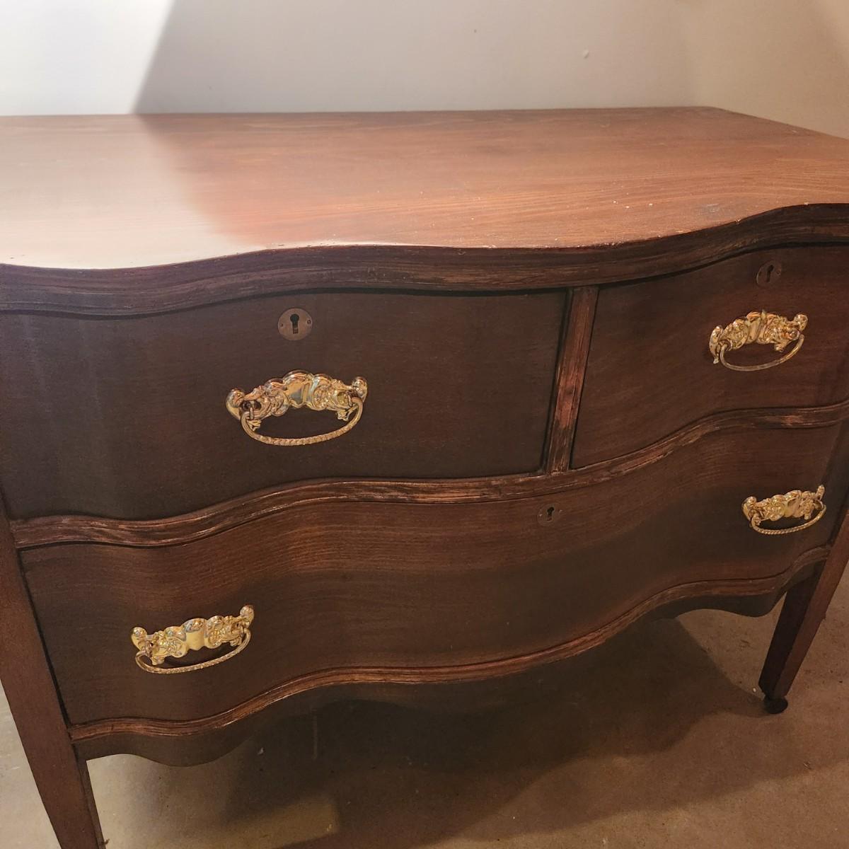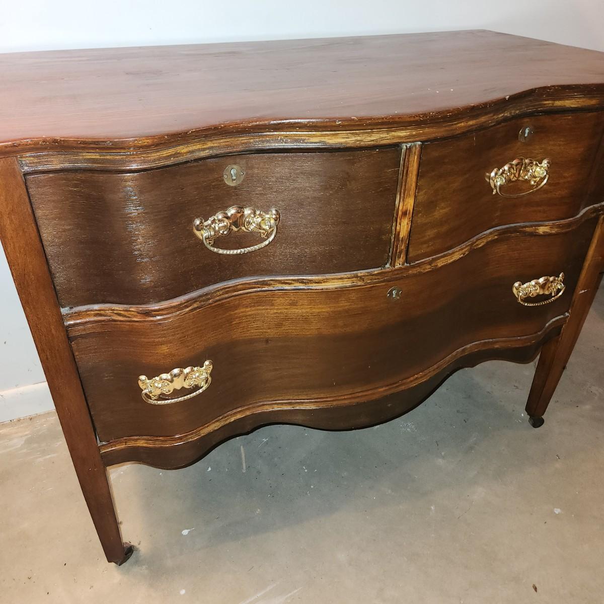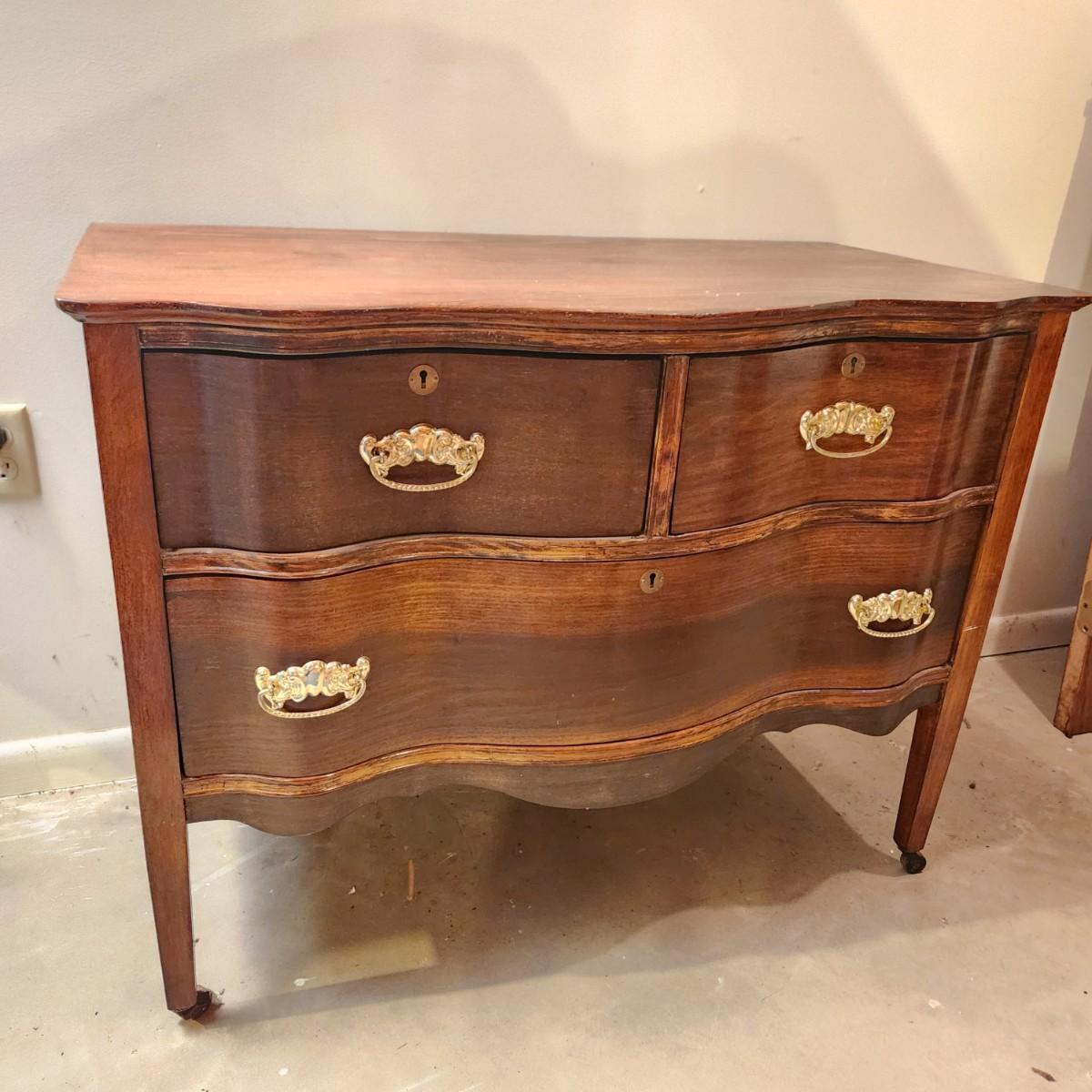 Serpentine Front 2 over 1 Chest Dresser on wheels 38x21x29