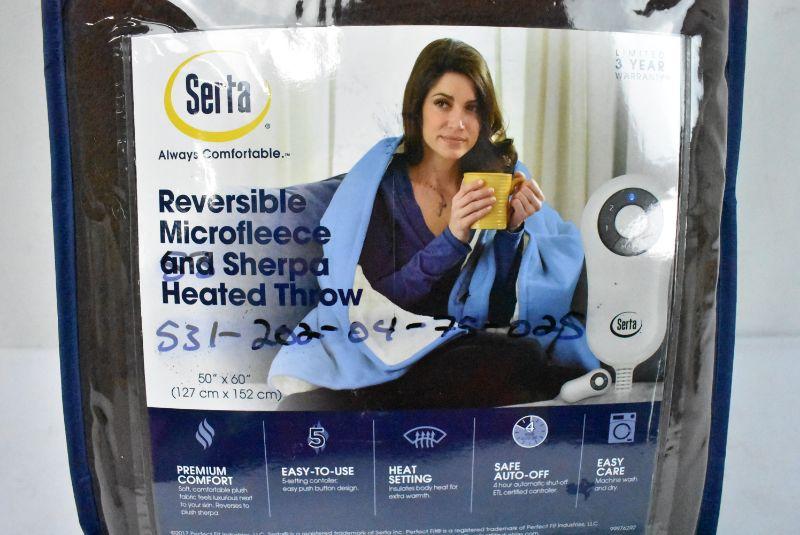 Serta Sherpa Reversible Electric Heated Throw, Brown, Retail $45 - New