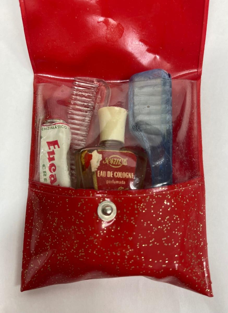 Vintage Travel Kit - toothbrush, toothpaste, comb, etc.