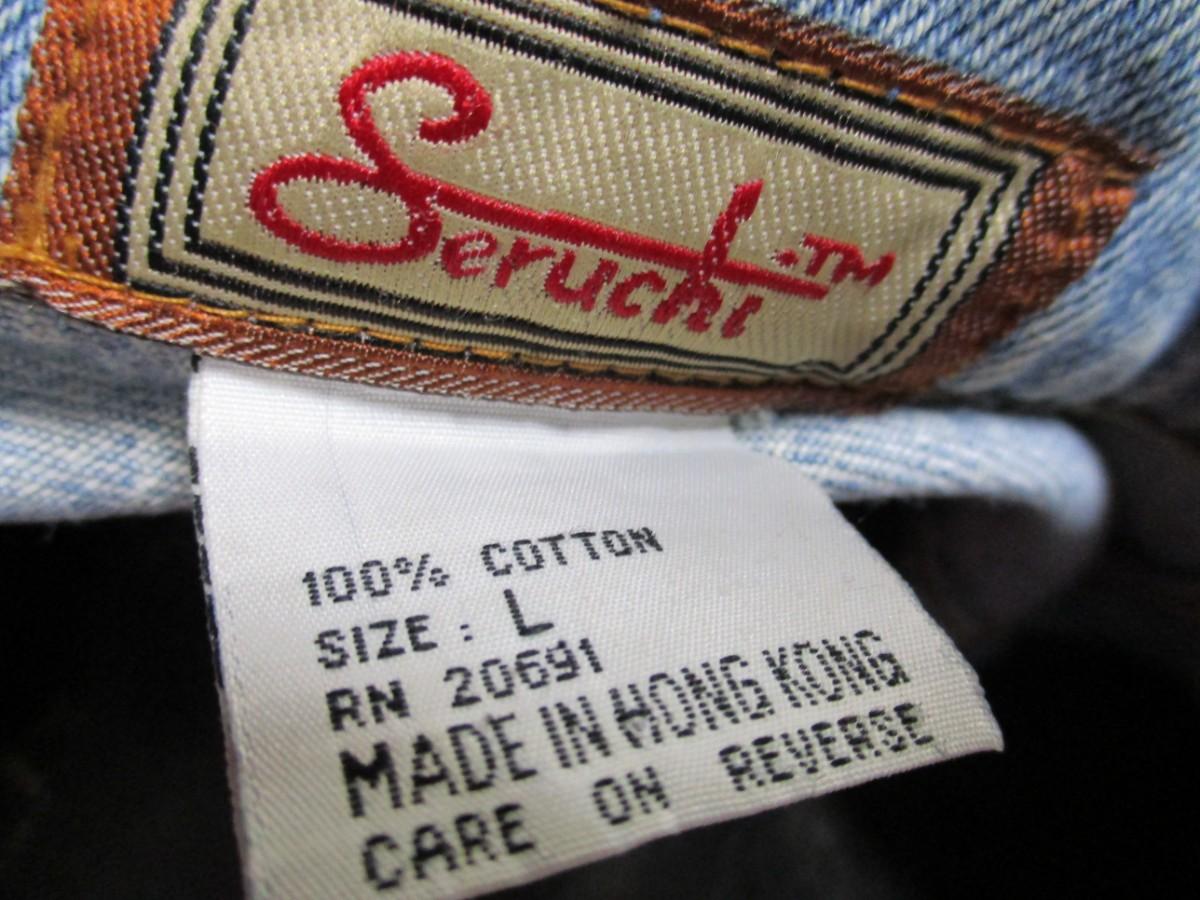 Seruchi Jean Jacket Size Large - 21 1/4 inches arm pit to arm pit - 19 inches long