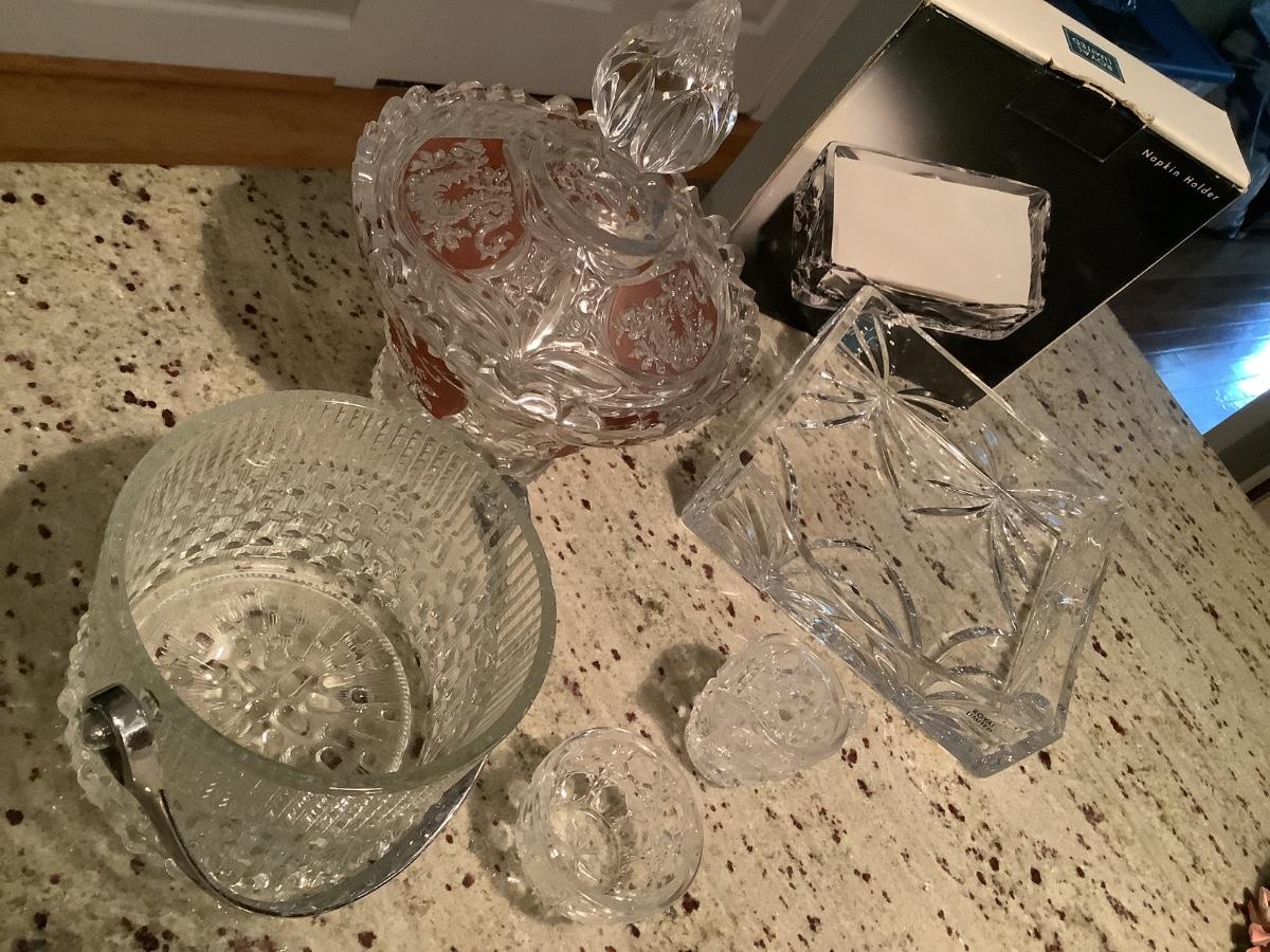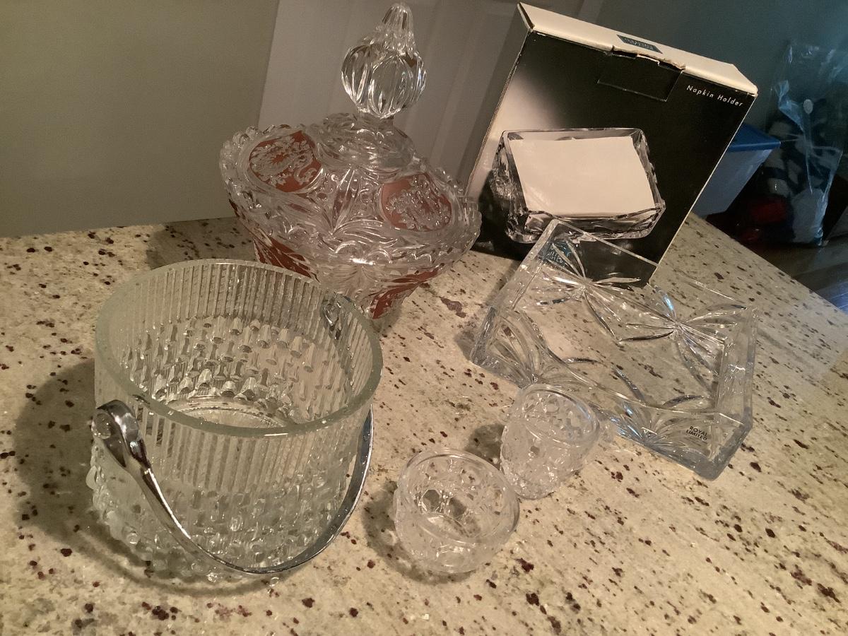 Serve it up right lot- with glass napkin holder, ice bucket, etc