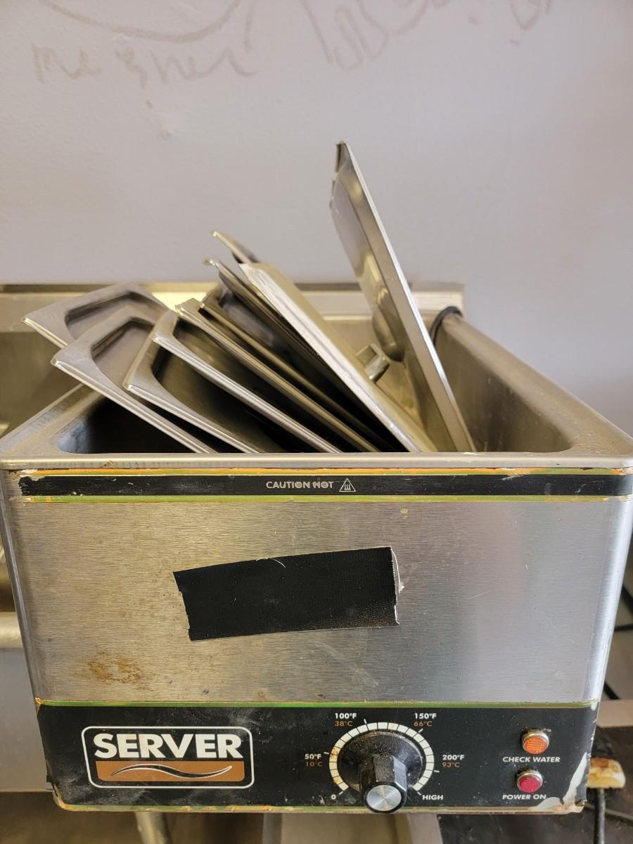 Server warmer with stainless steel lids