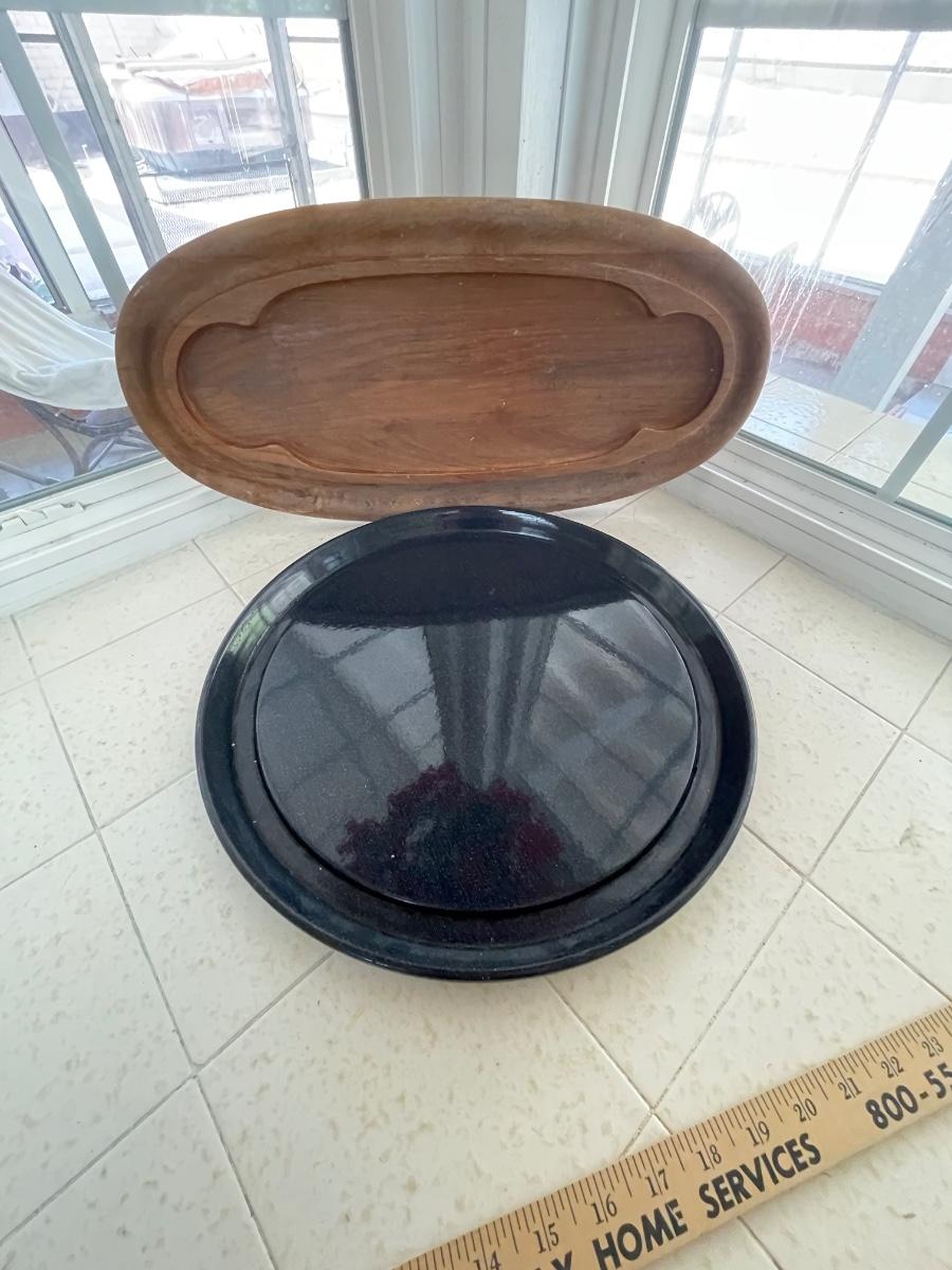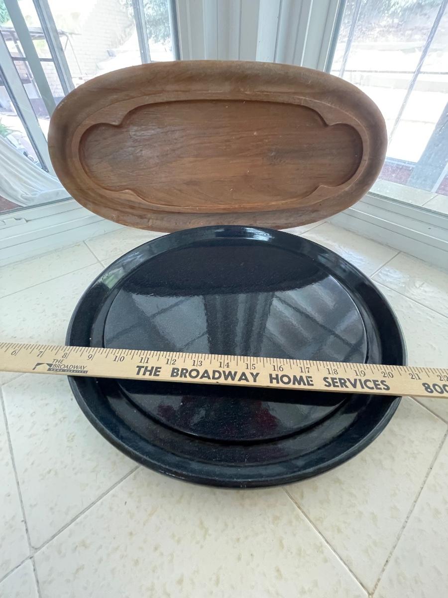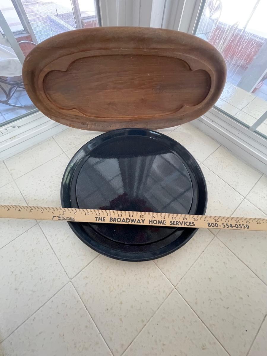 Serving dishes trays wood and metal