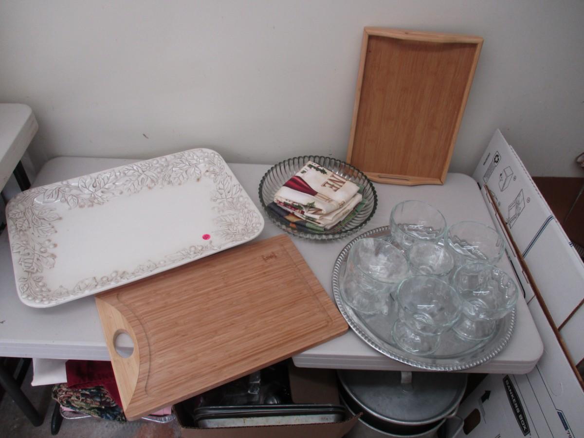 Assorted Kitchenware- Serving Platter Cutting Boards, etc.