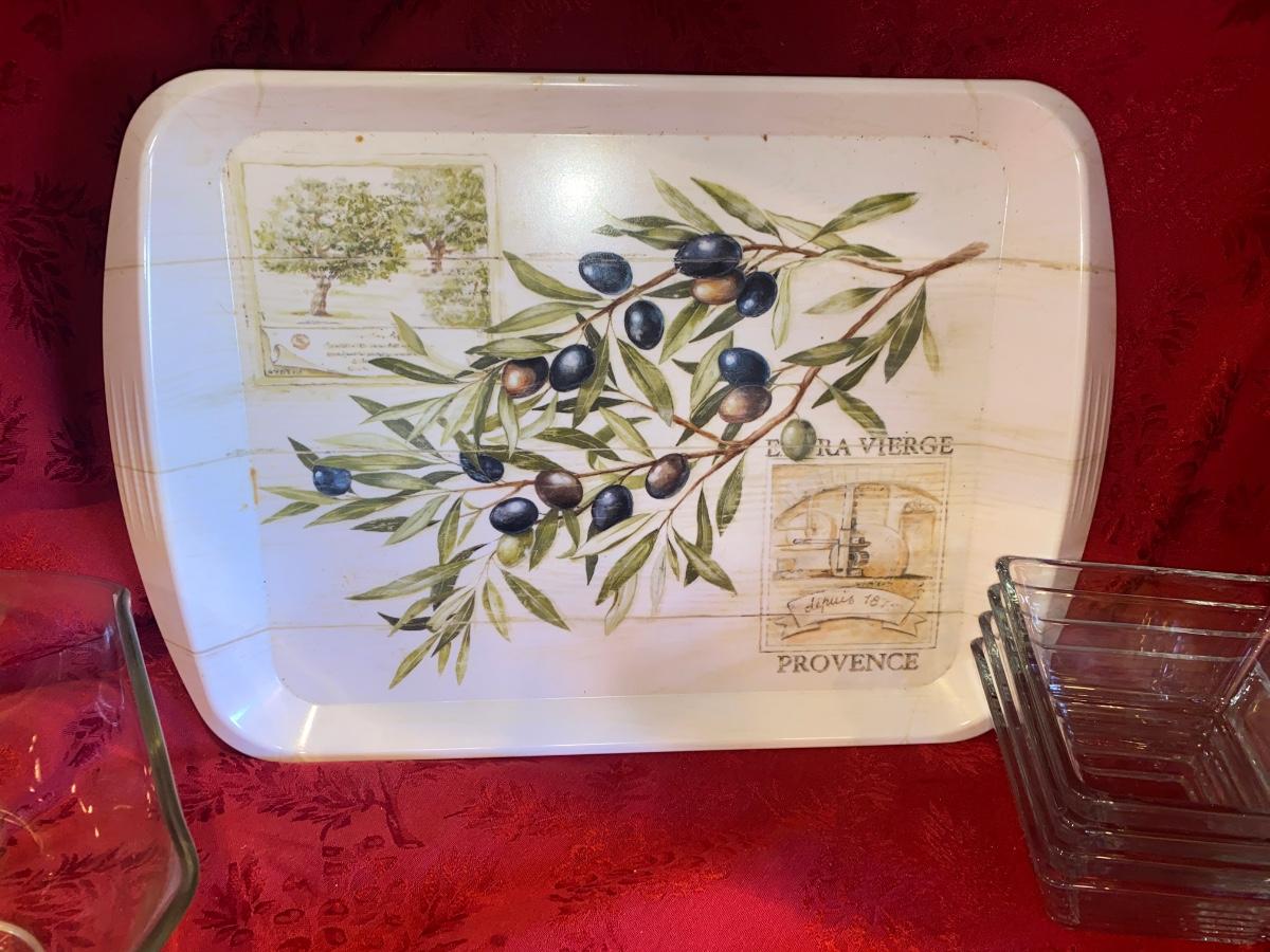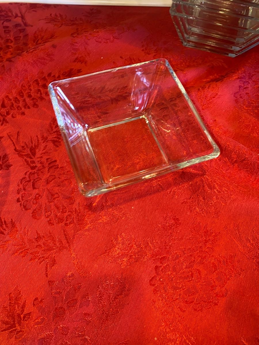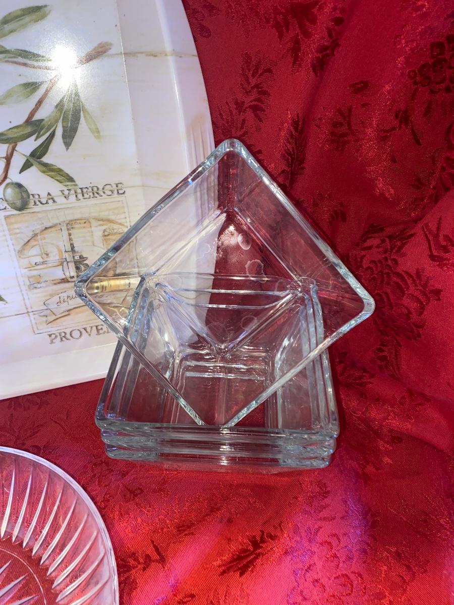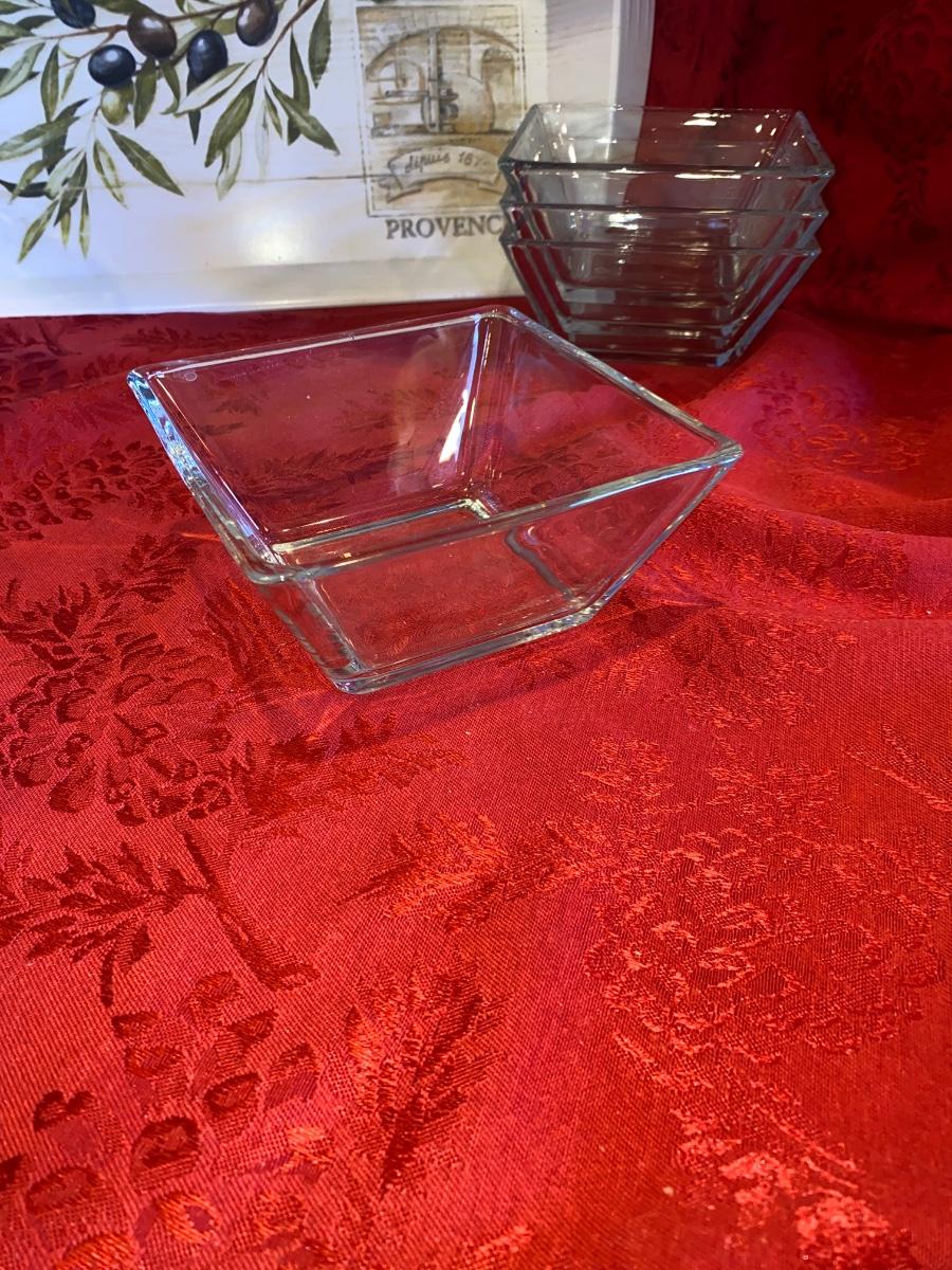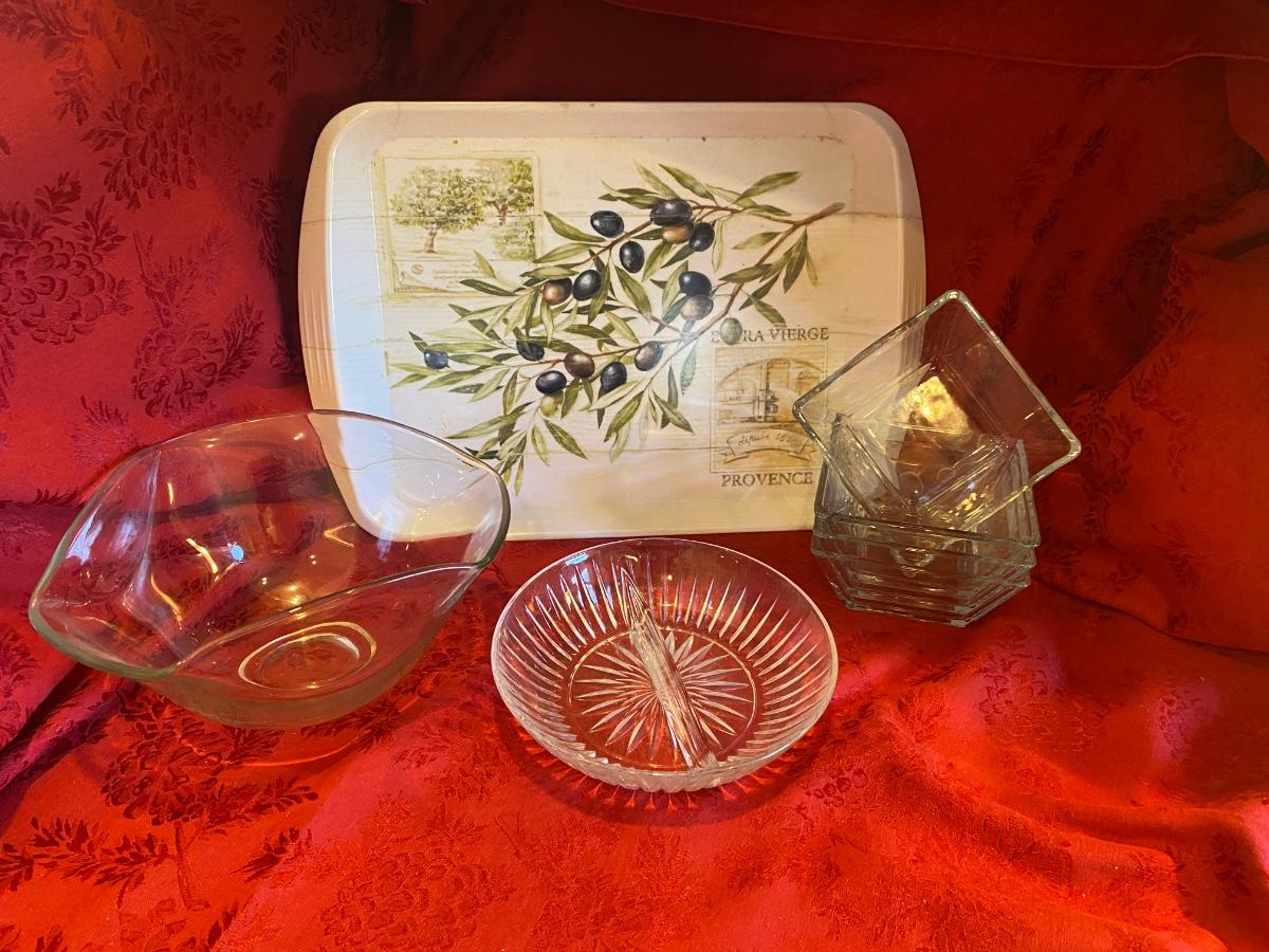 SERVING TRAY, SQUARED GLASS BOWLS, LARGER SERVING BOWL, HORS D’OEUVRE DISH