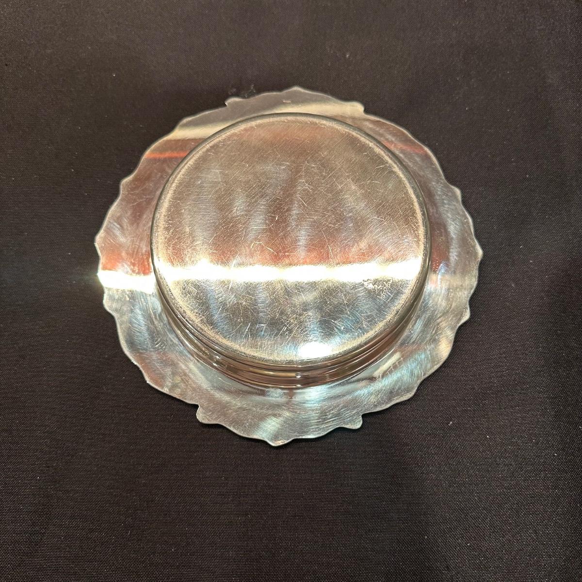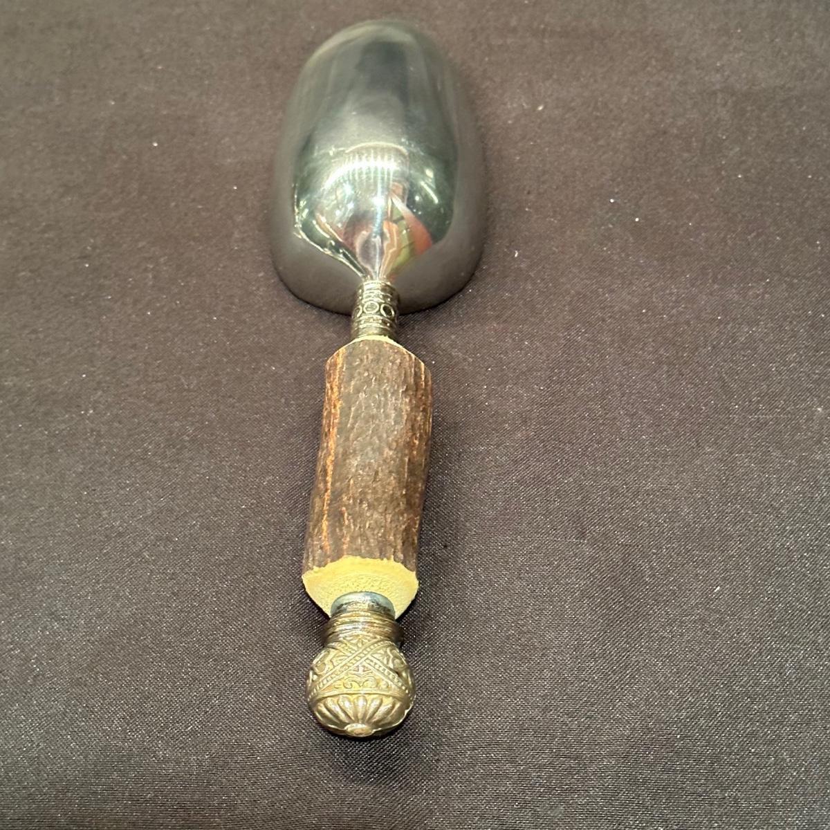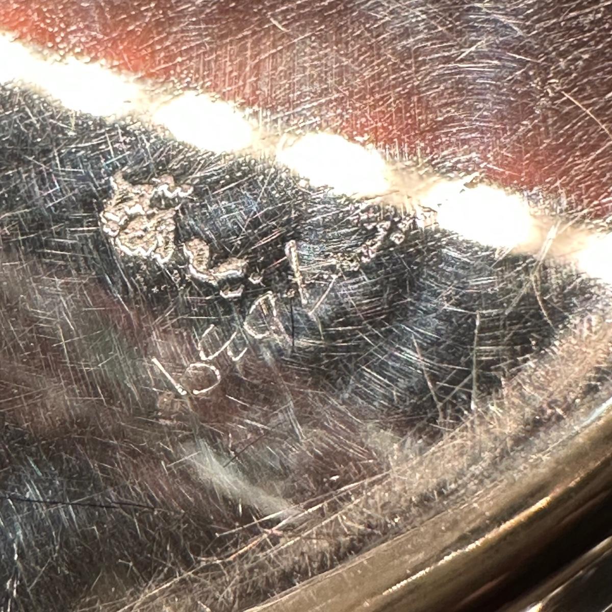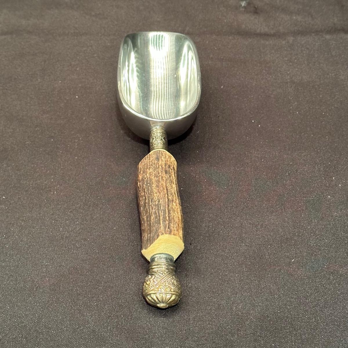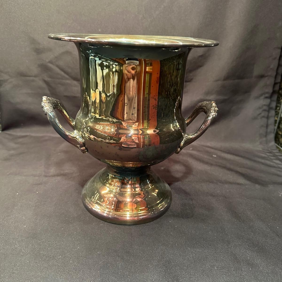 Serving tray with carved glass bourbon decanter, Tiffany silver stamped “Bourbon” tag, carved glass pitcher, silver stamped corked glass cover. Ice bucket is stamped and appears to be silver plated. It is engraved on one side and measures 10”H. Tray measures 20.5” x 13.25” x 1”H. Other accessories include wine cork, ice tongs and ice scoop. Shipping available.