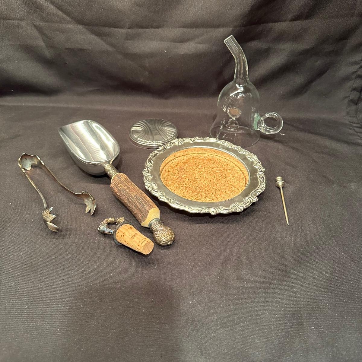 Sterling Bar Accessories and Glass Decanters (B-KL)