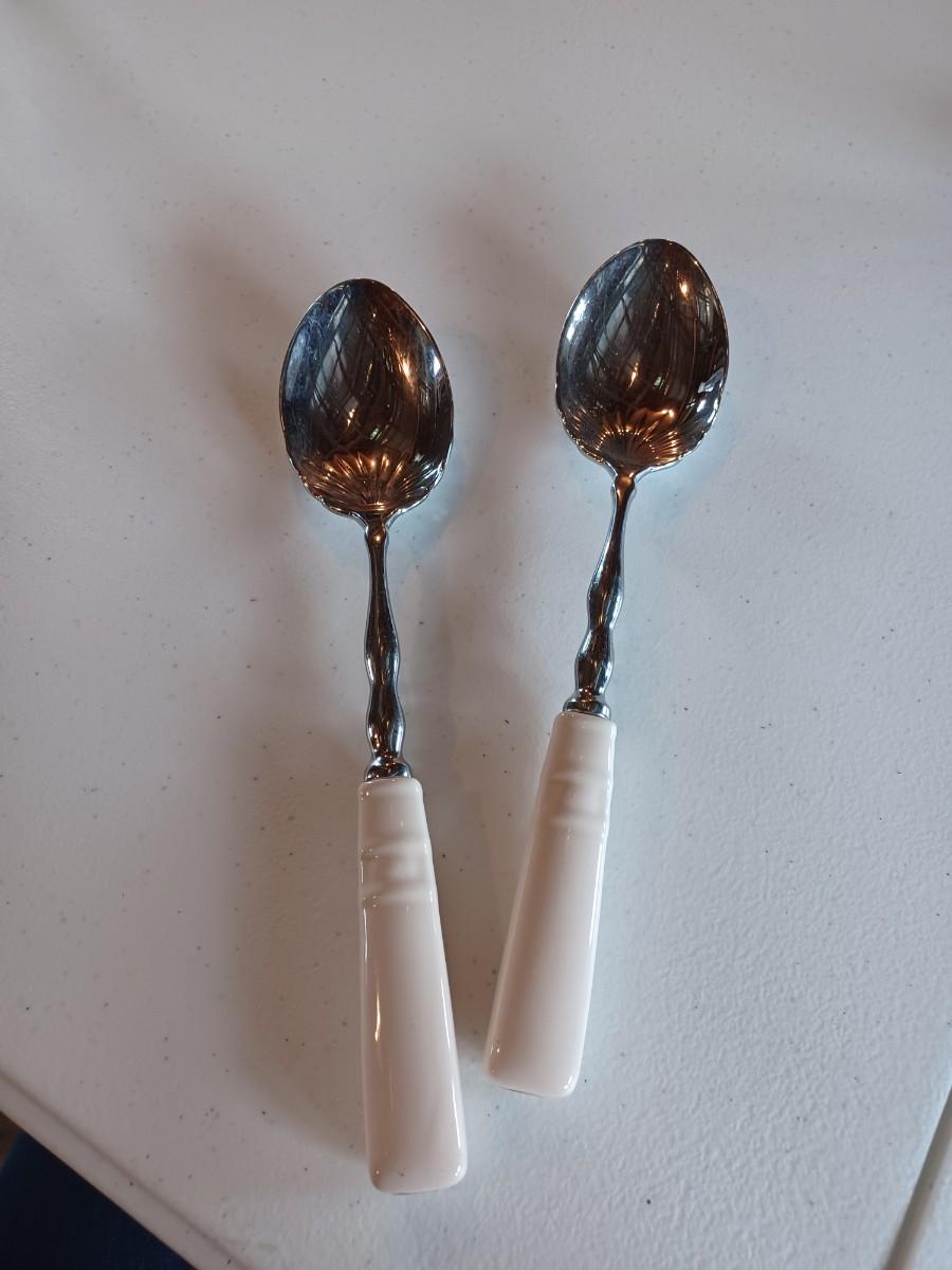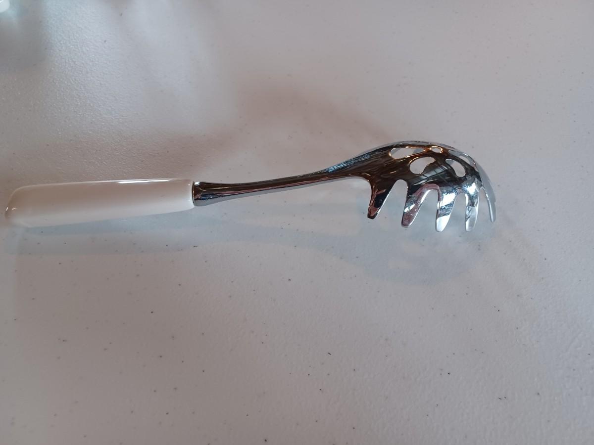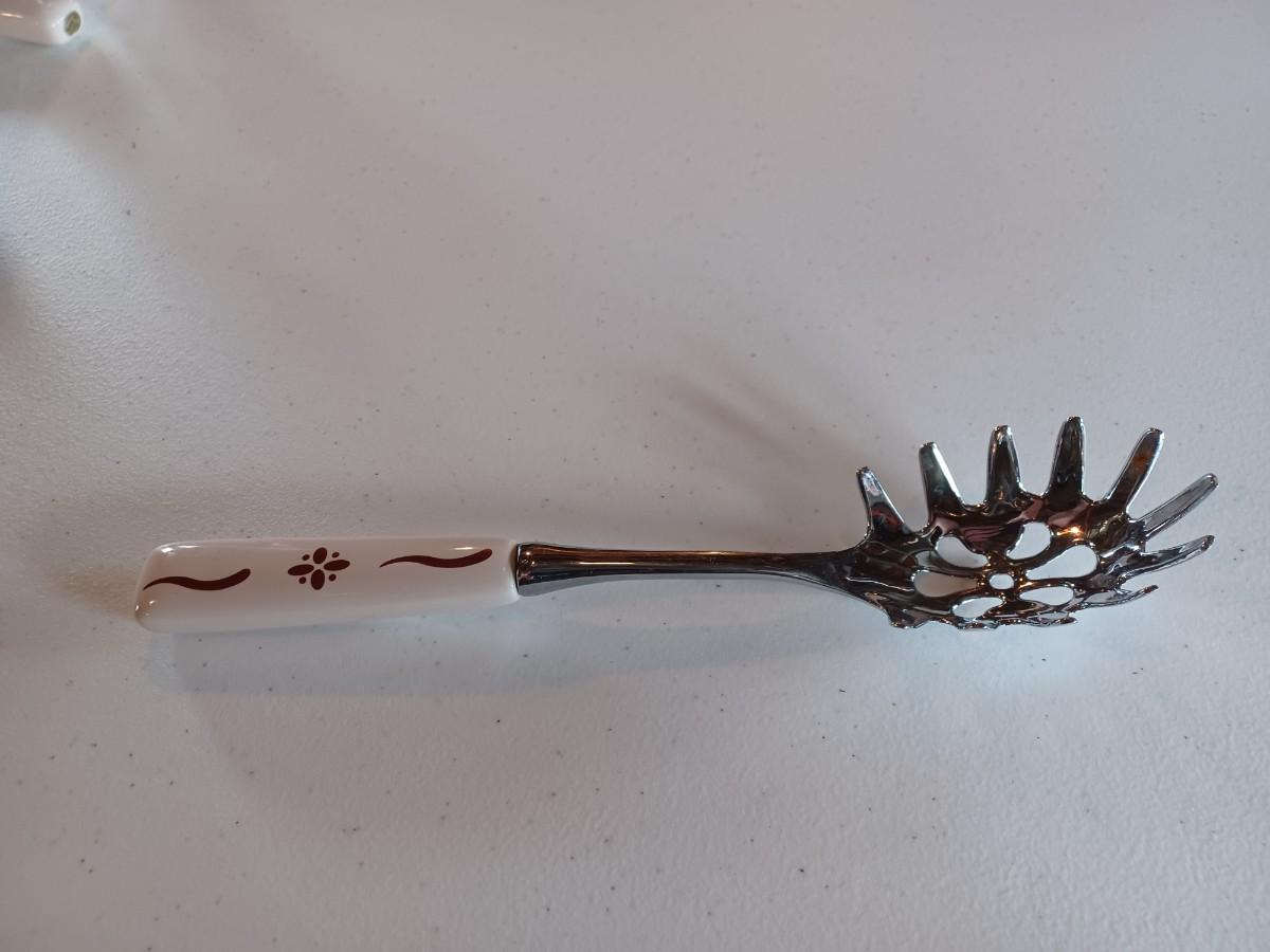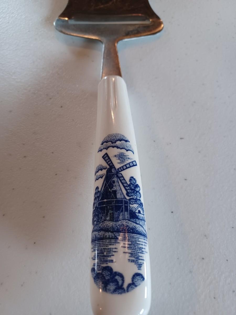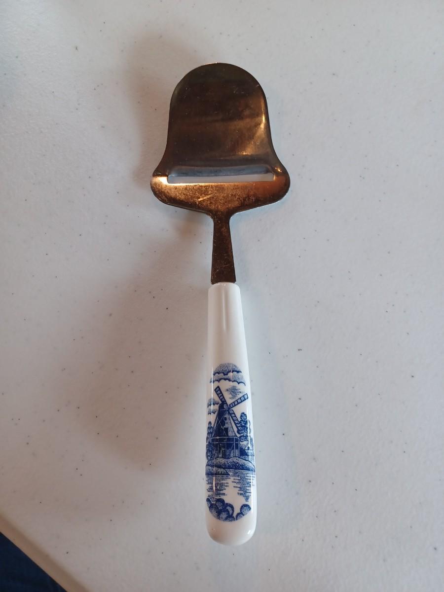 4 serving utensils (cheese slicer by delft, 2 spoons, and 1 spaghetti spoon )