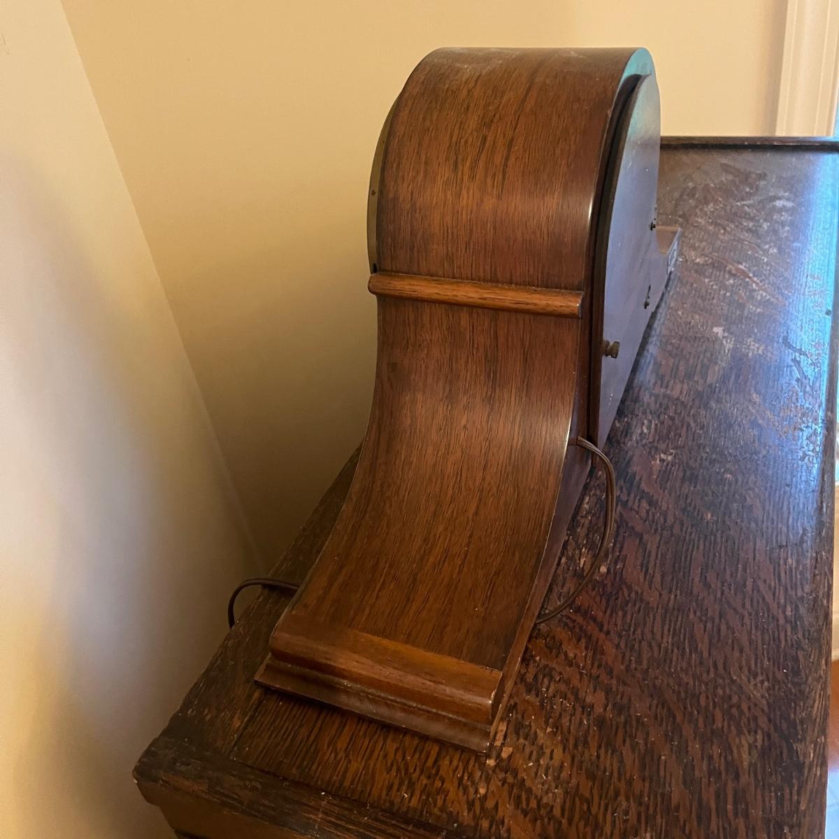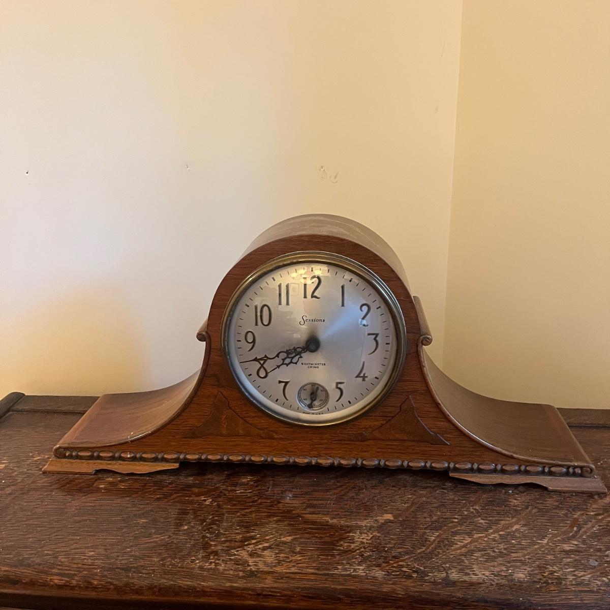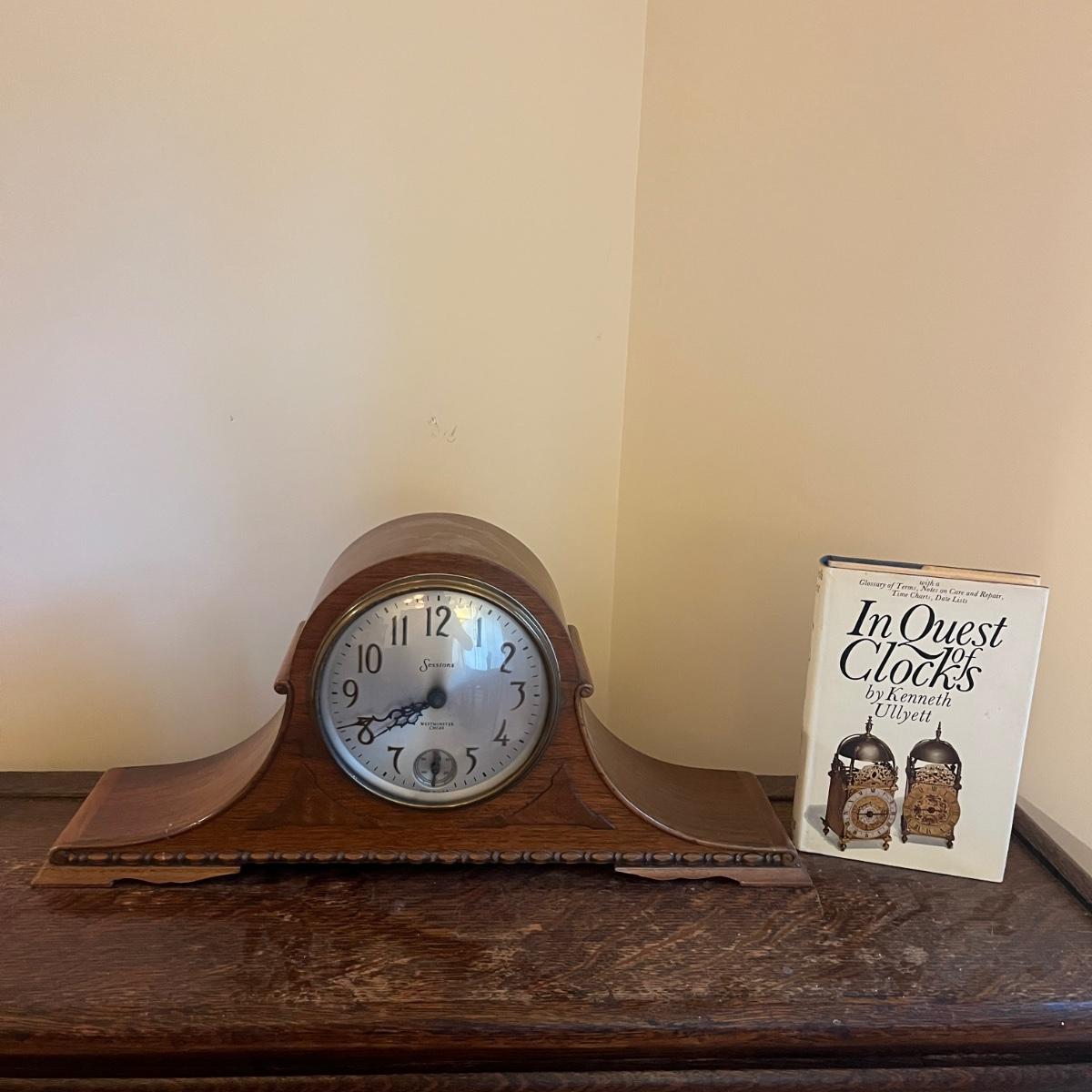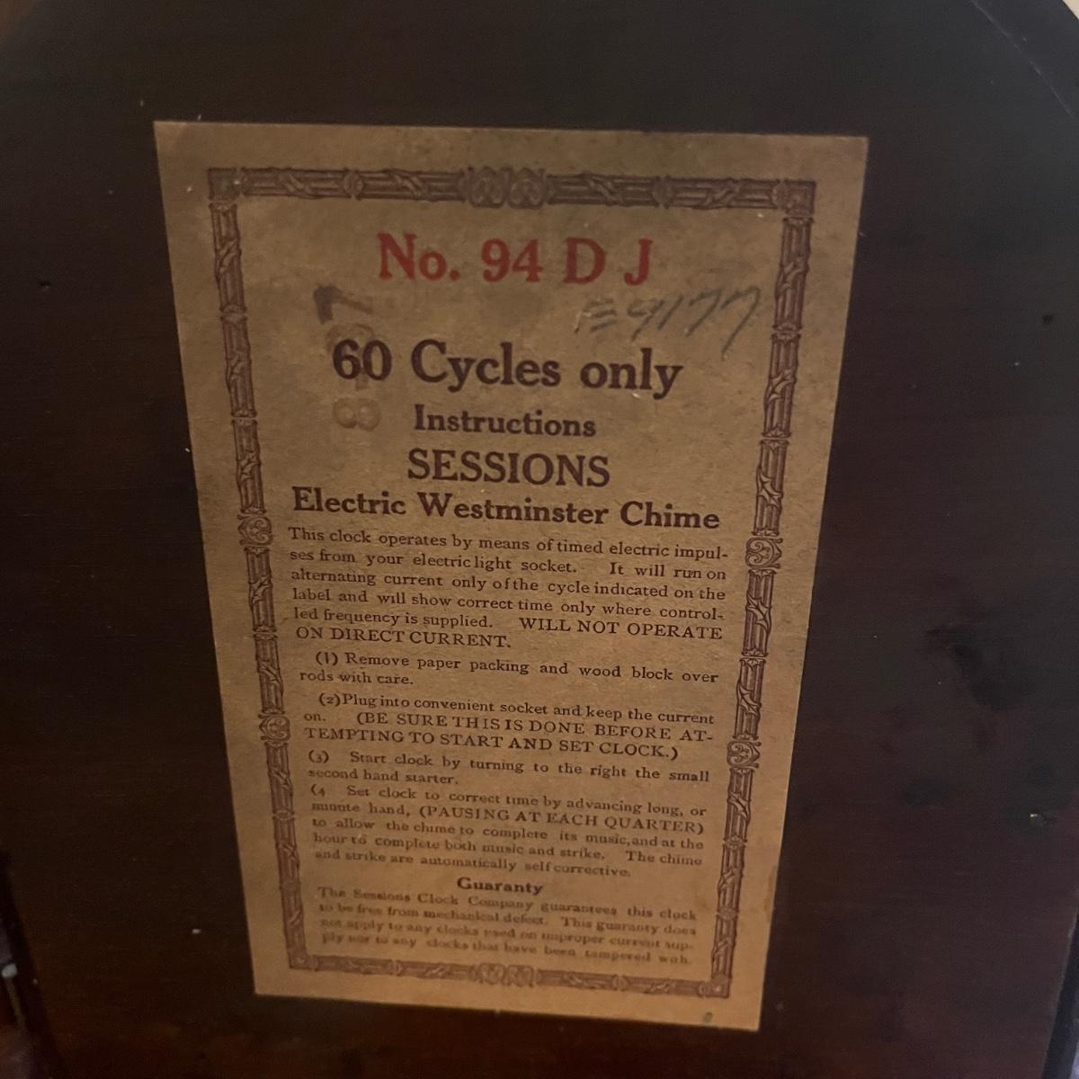 Lot includes a Sessions electric clock with Winchester chimes. Clock has wooden body and measures 21” x 5” x 9.5”H. Clock powered on when plugged in. Also includes In Quest of Classic CO’s book.
