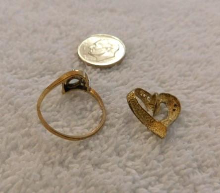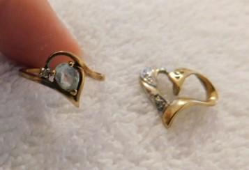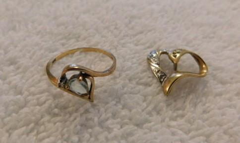 Set 10K Gold Ring with Blue Topaz Oval Stone and 10K Gold Heart Pendant
