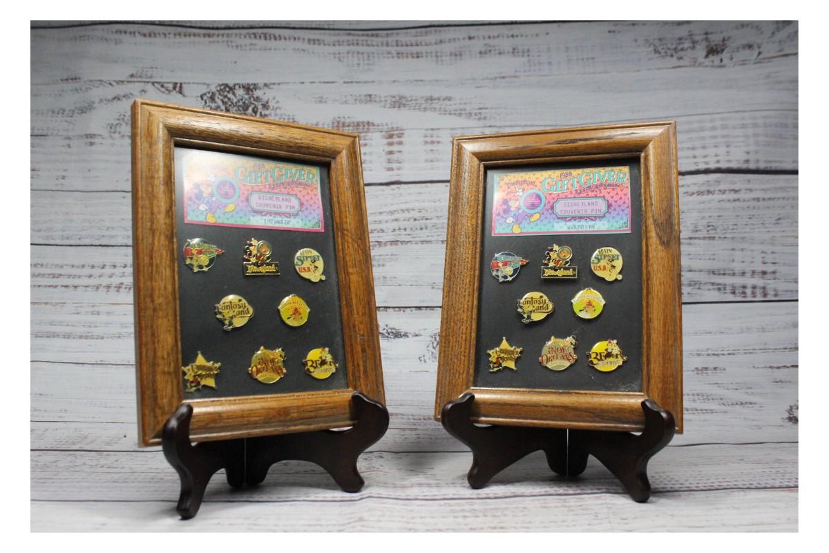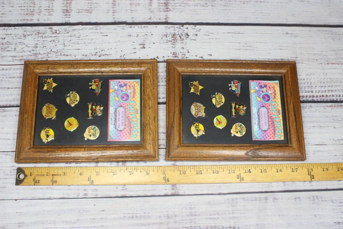Vintage Pair of Framed Disneyland's 30th Anniversary Gift Giver Collectible Pins & Tickets Set 2, comes with two complete Disney Gift Giver Pin lots framed with their ticket. These pins were given to guests at the Disneyland Park. There is no damage to the frame or protective glass, check pictures for more details and for sizing.