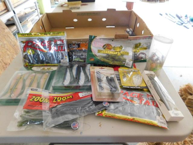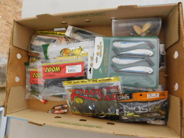 Set 4 Collection of Plastic Worms and Shads with Other Baits in Box