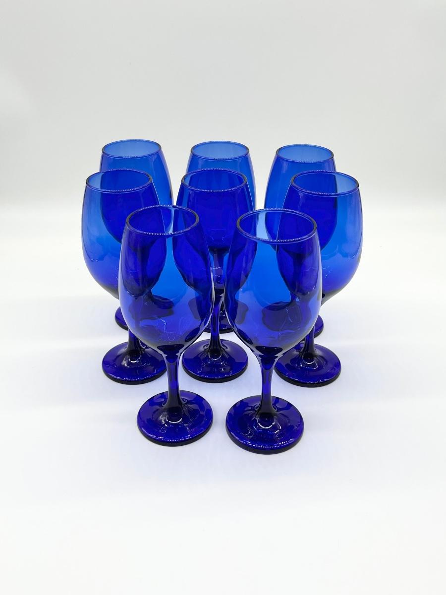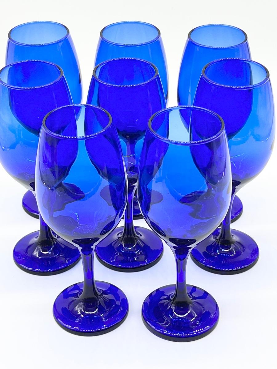 Set Eight (8) ~ Cobalt Blue Wine Glasses