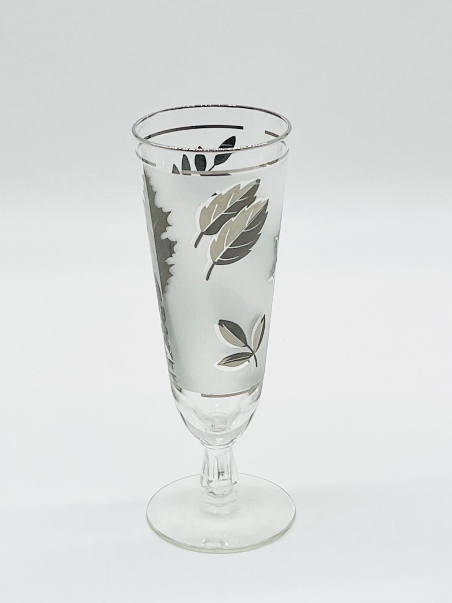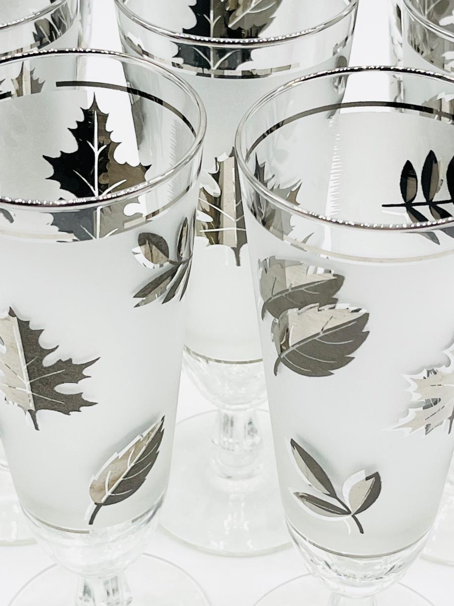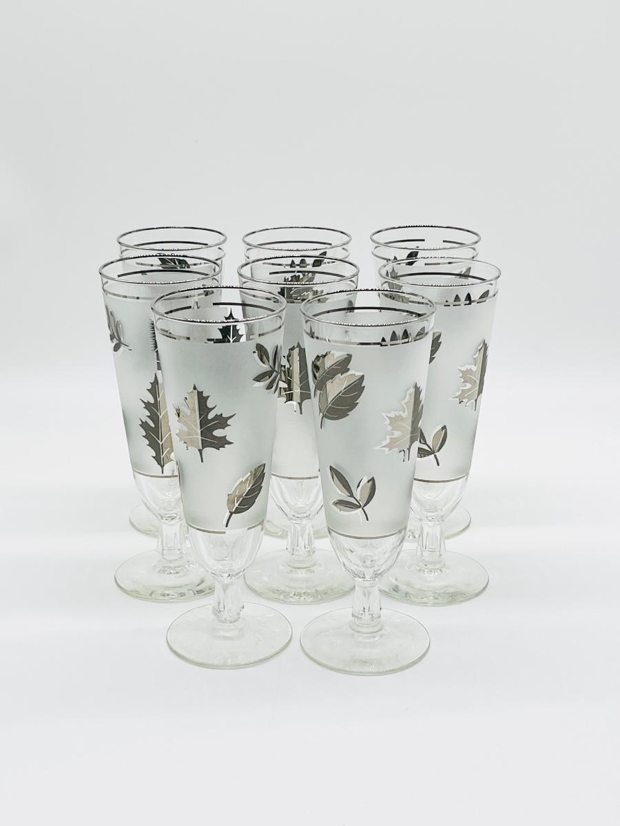 LIBBEY ~ Set Eight (8) ~ Silver Leaf Pilsner Frosted Glasses