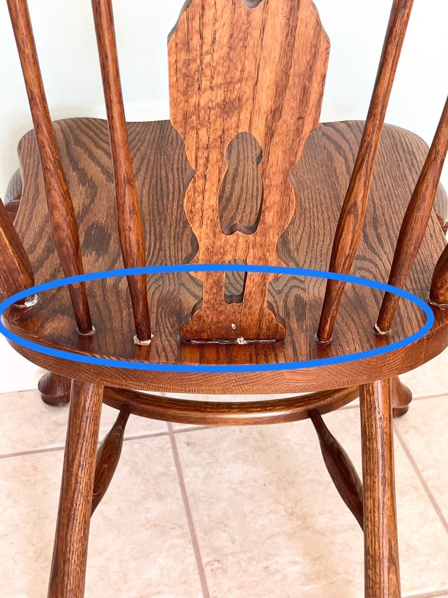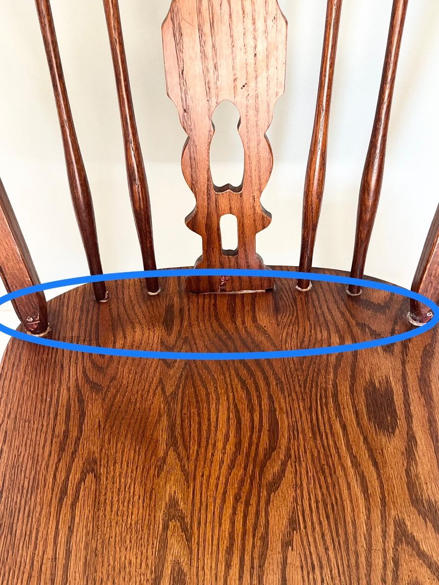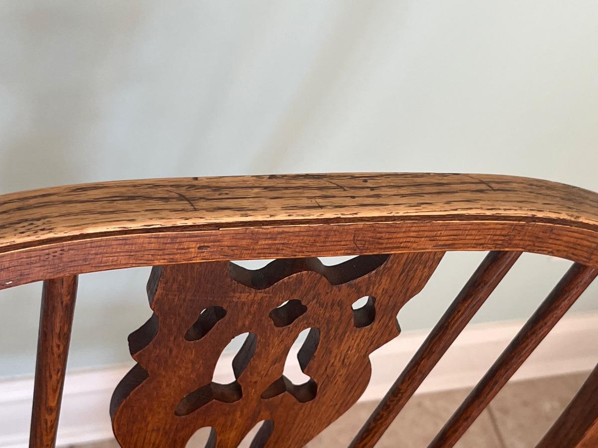 *back is broken on one chair, has been repaired but needs more repair work ( see photos) ~ 42.4” H x 21.5” W x 20.5” D ~ no brand name found