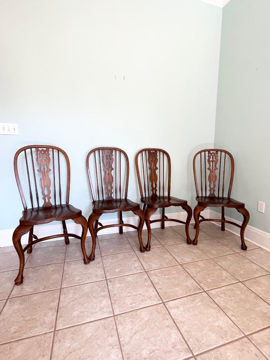 Set Four (4) ~ Queen Anne Style Solid Oak Dining Room Chairs ~ *Read Details