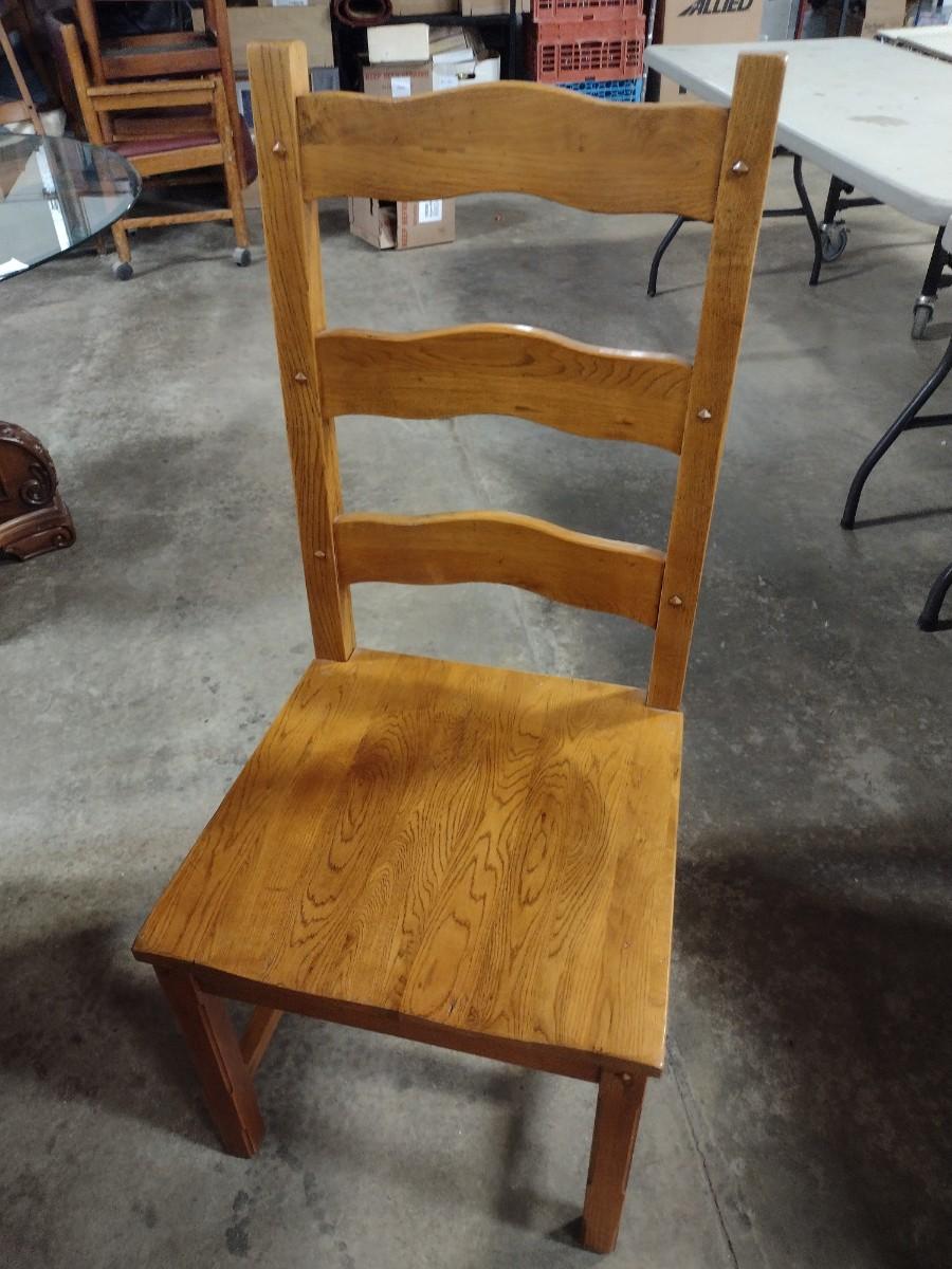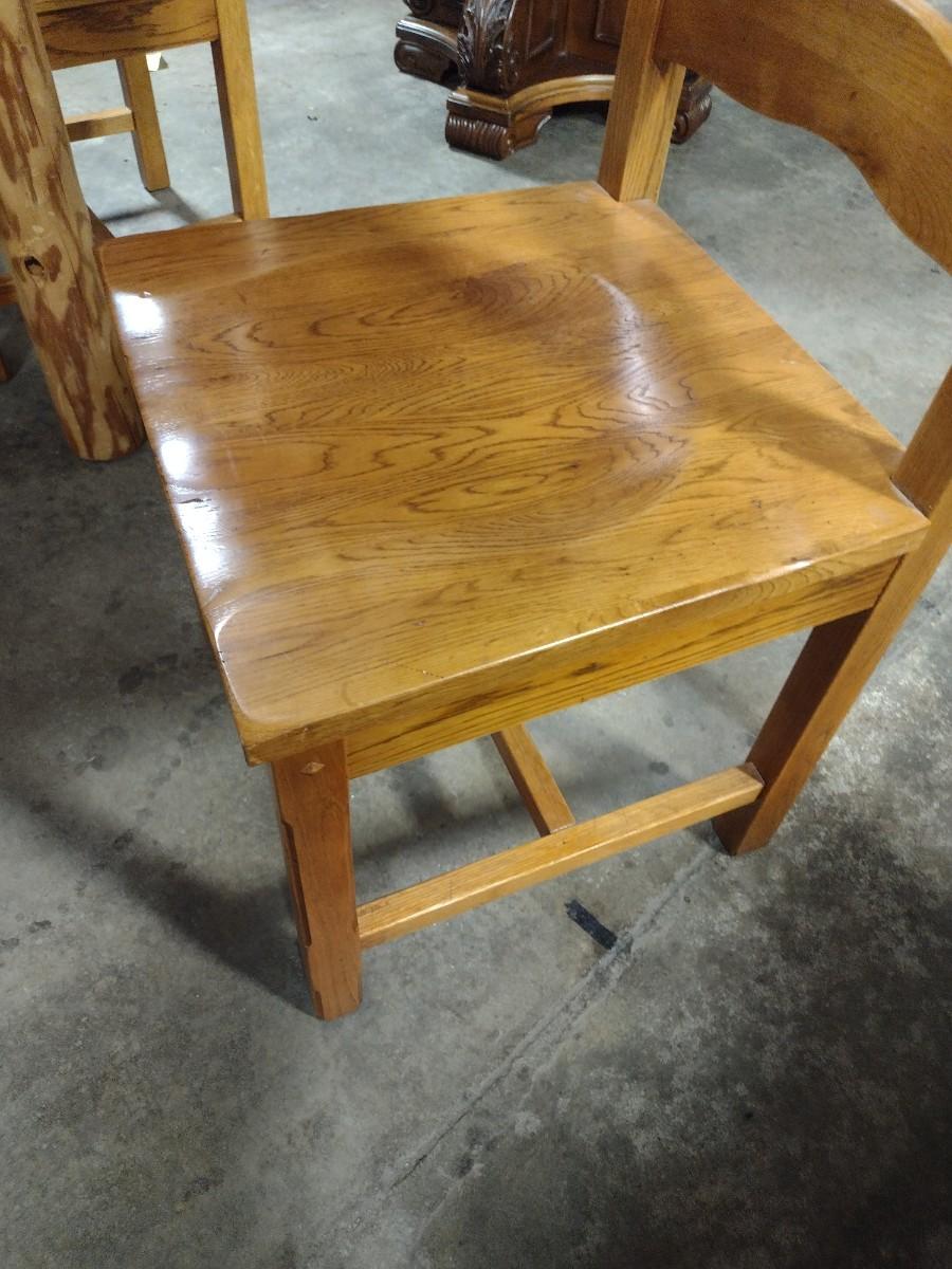 Set Four Matching Cabin Furniture Custom Made Heavy Solid Wood Ladder Back Chairs