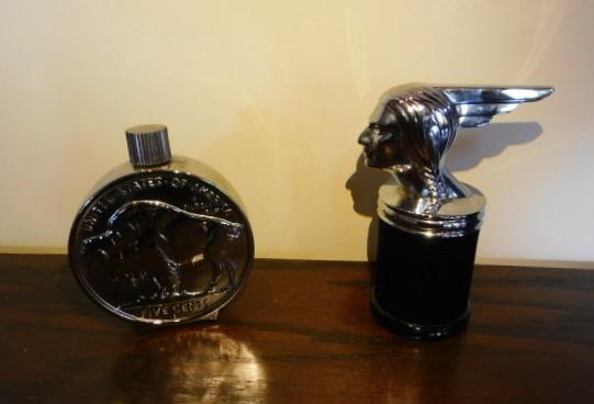 Set Large Scale Buffalo Nickel and Pontiac Indian Avon Collector Bottles