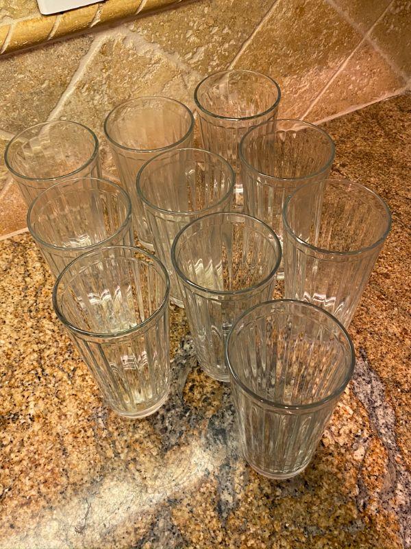 Set of 10 Drinking Glasses. Good Condition, No Chips.