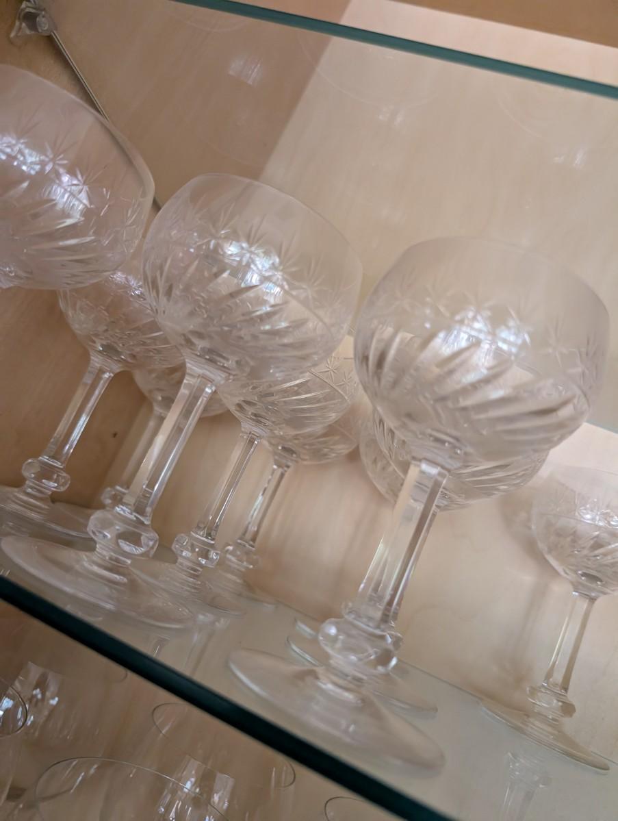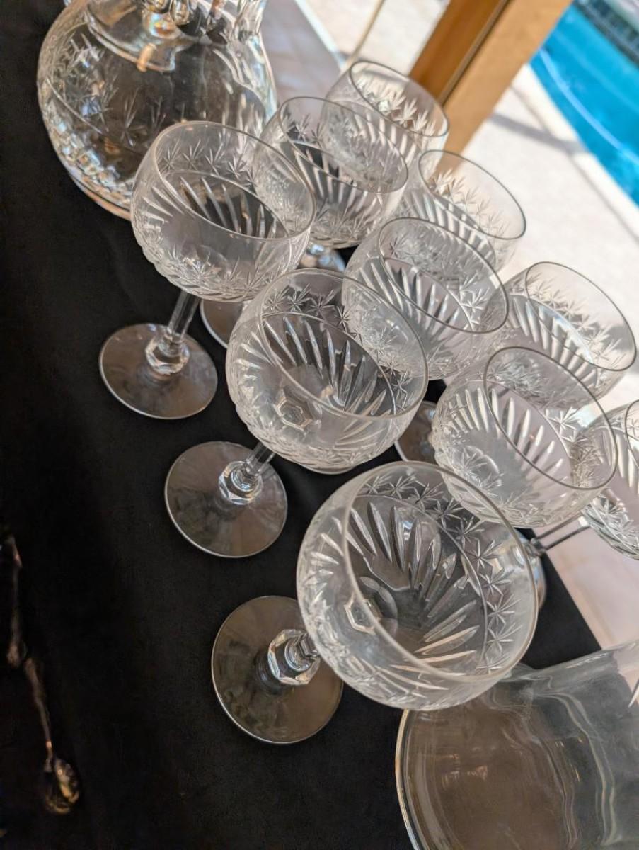 Set of 10 Etched Crystal Glasses plus Pitcher