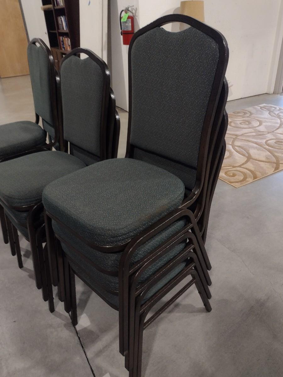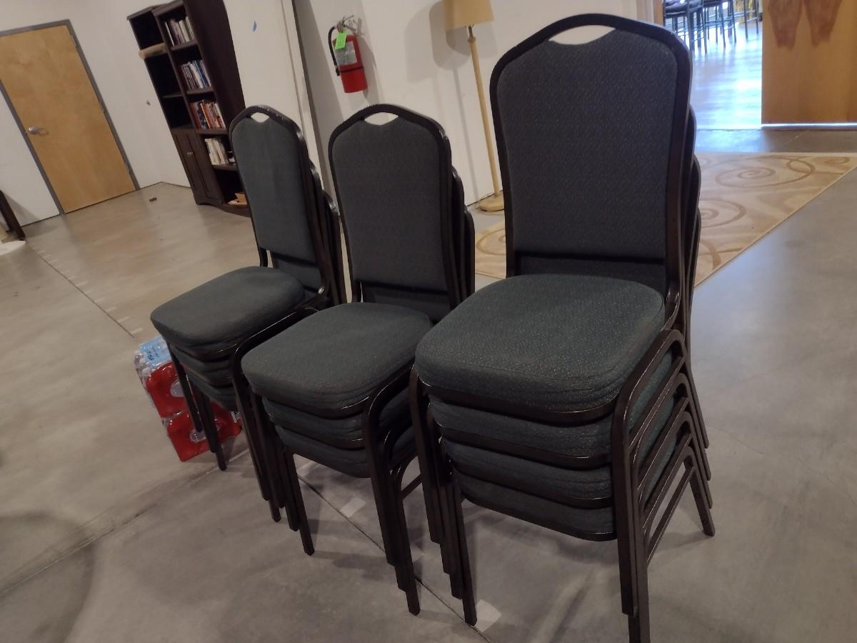 Set of 10 Fabric Seat and Back Metal Frame Stacking Chairs