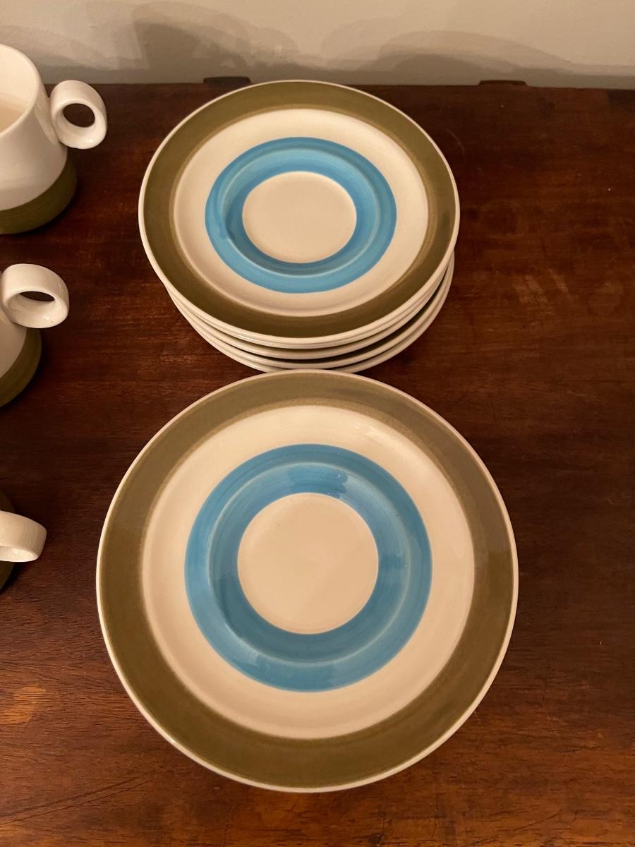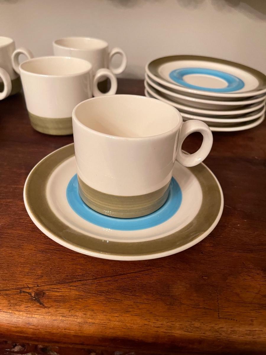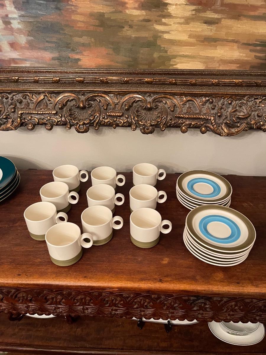 Set of 10 Royal M. Crown stone Cups & Saucers. Great decor for any MCM home. Excellent condition.