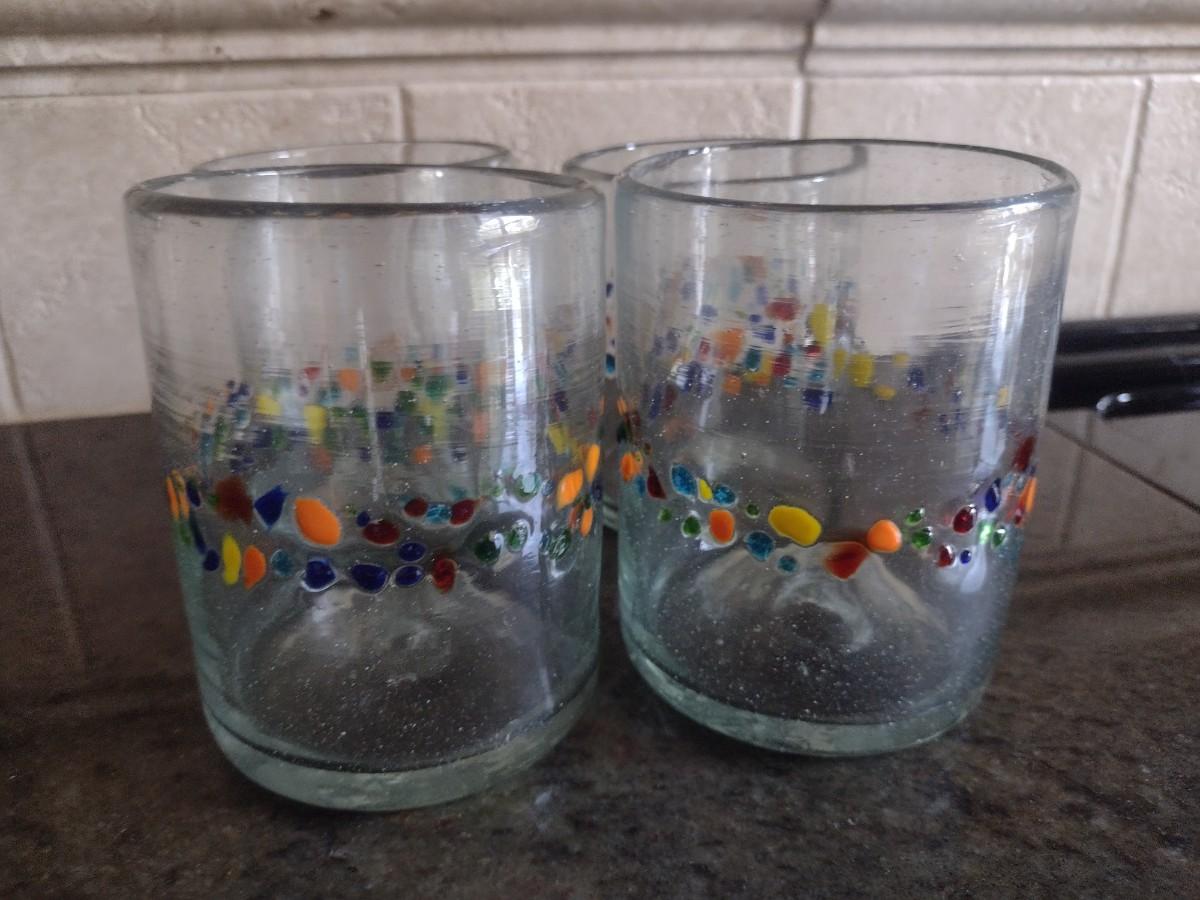 Set of 10 Tutti Frutti Hand Blown Drinking Glasses 4"