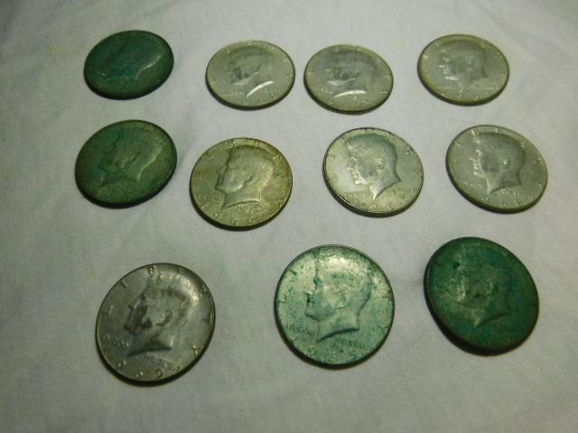 Set of 11 Kennedy Half Dollars 1965-1970 Circulated 40% Silver