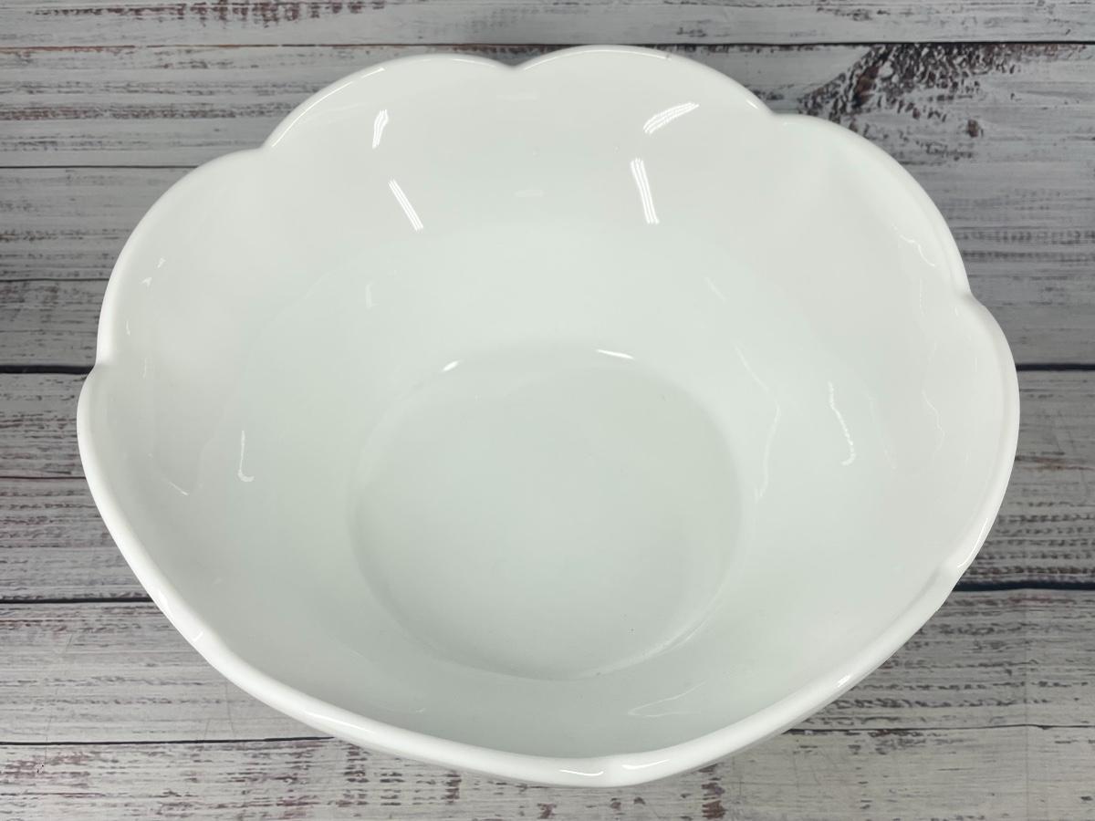All items are in good condition. There are some scratches on the bowl and tea cups but they aren’t too noticeable. There are some slight discolorations on the items. The bowl is approximately 14” wide and 7” tall. As a warning, the bowl is very heavy.