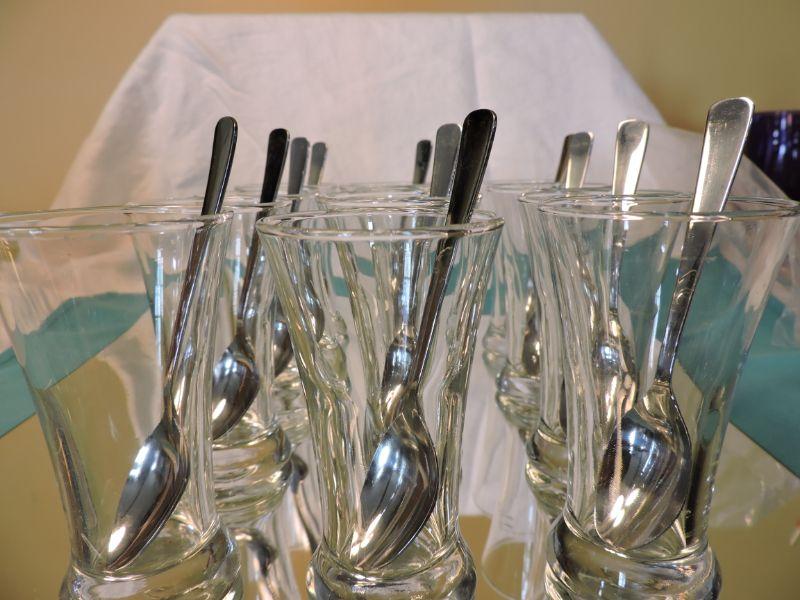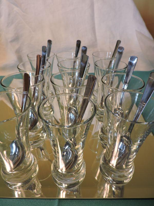 Glasses are about 4" high. Perfect for a small parfait or mousse. **Please read Terms and Conditions before placing a bid. Pick up is Wednesday, September 25 from 4pm to 7pm and Saturday, September 28 from 9am to 1pm in Williamstown, NJ. All sales are final. All sales are as is, where is. Please review all photos. Any props included in photos are not included in listing. All measurements are approximate.