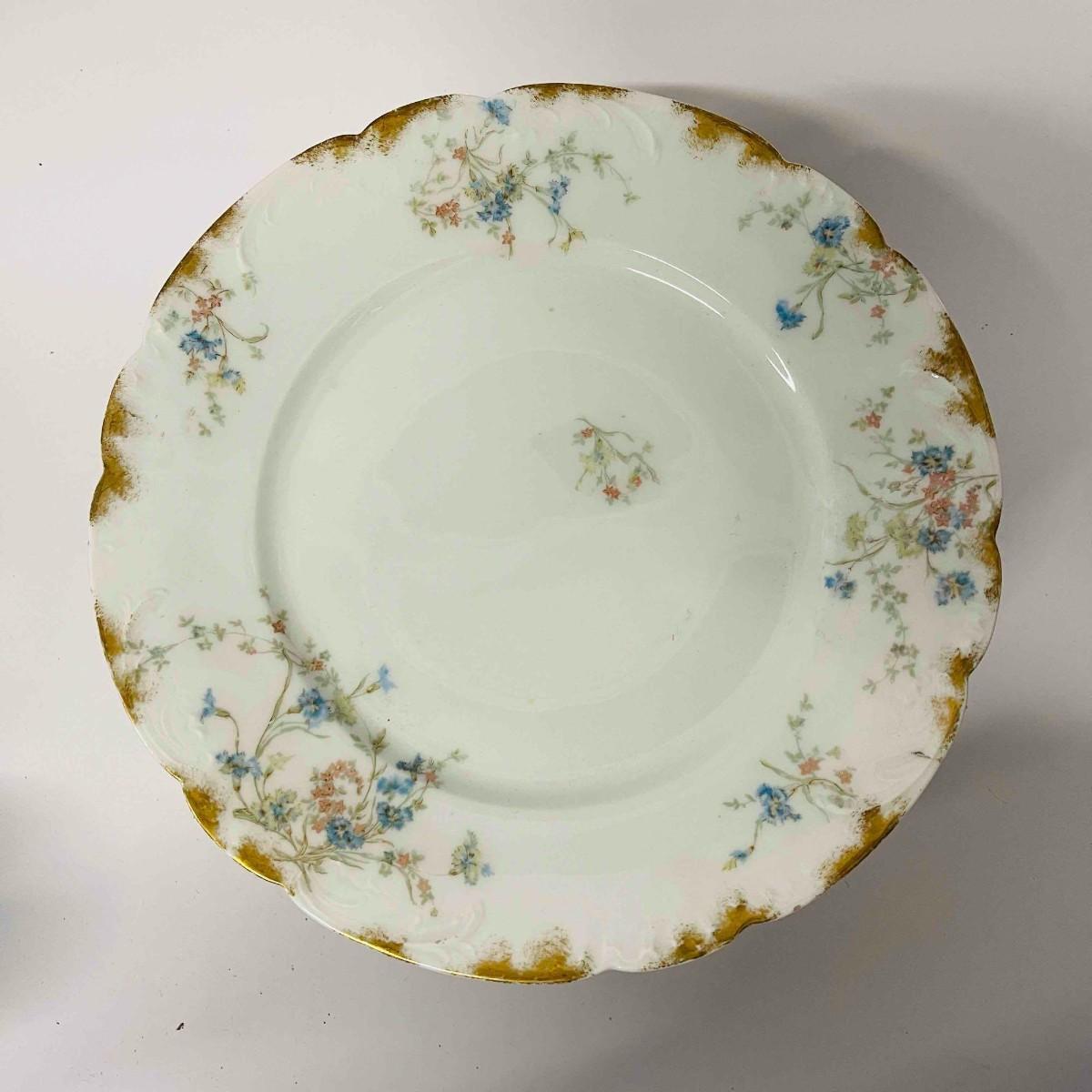 <p>Set of 12 Haviland Limoges Dinner Plates. Sold by Hardy &amp; Hayes of Pittsburgh Pa. Excellent condition. 12 transferware plates with hand applied gold embellishments. 9 7/8” each. </p>