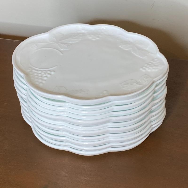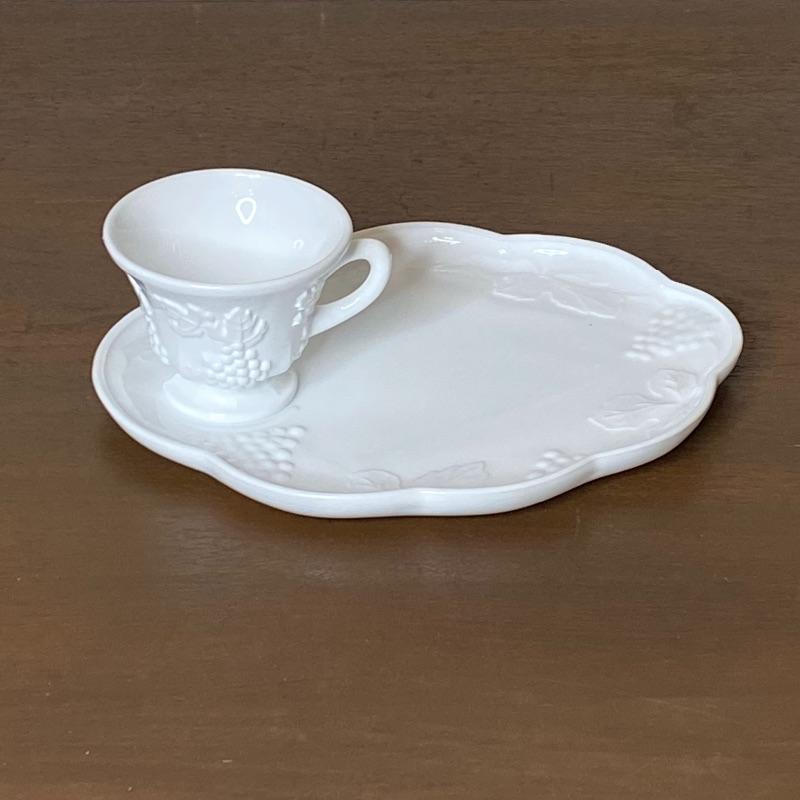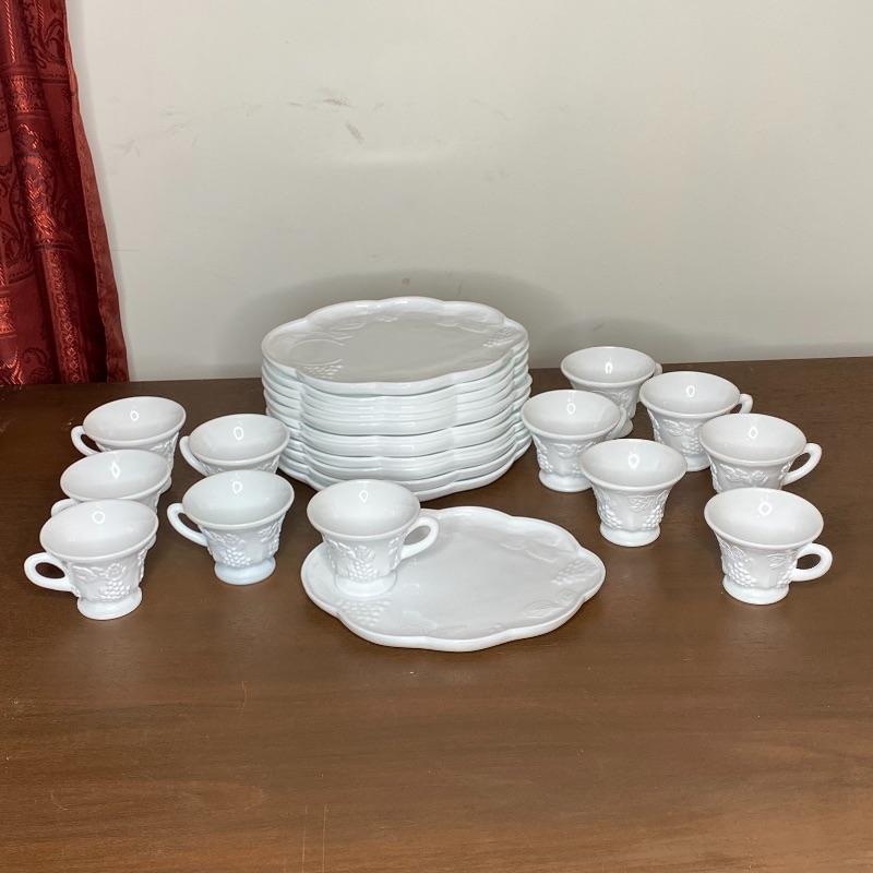 Set of 12 Milk Glass Coffee Cups and Plates