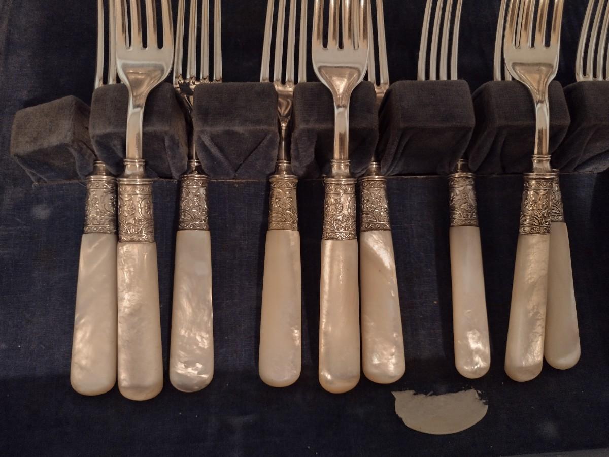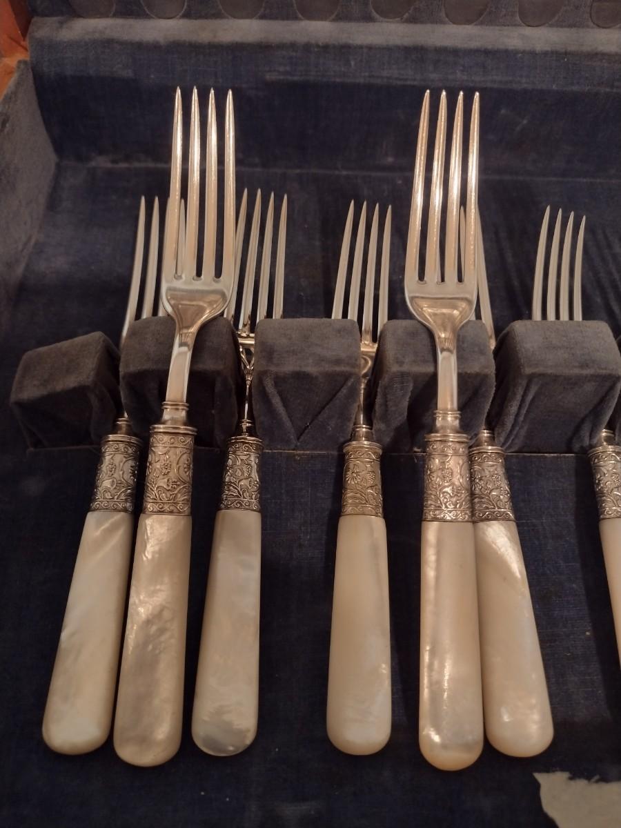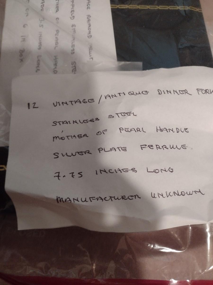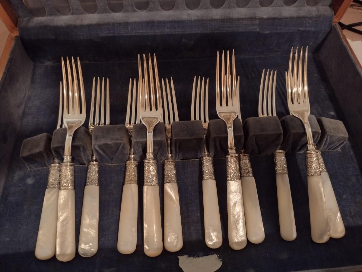Set of 12 Vintage Mother of Pearl Handled Stainless Dinner Forks