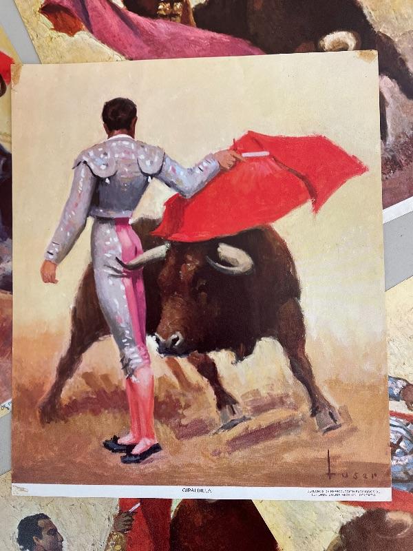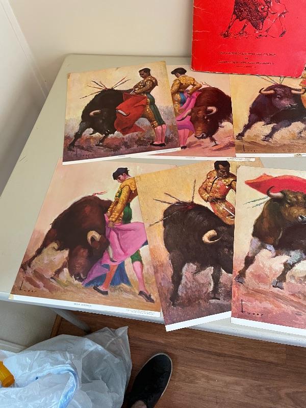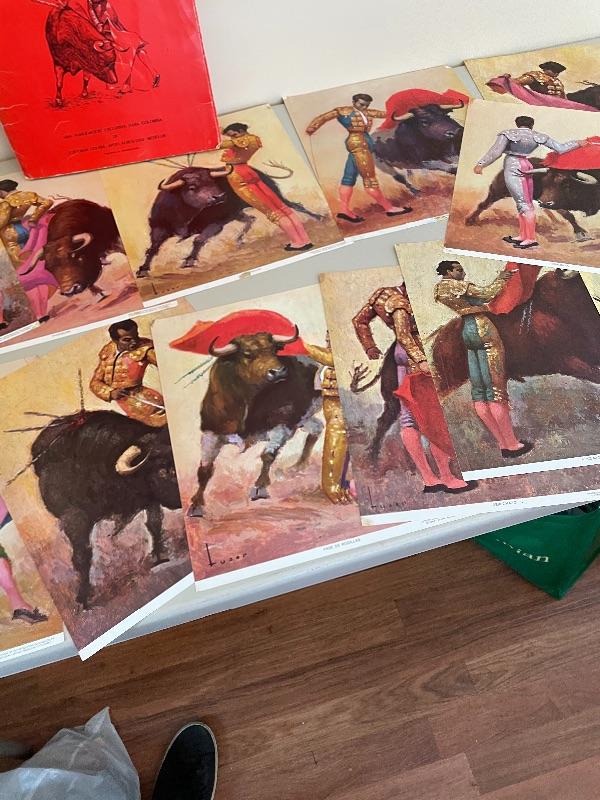 Pick up time is 4:00 to 5:00 PM 12 vintage prints depicting bull fighters