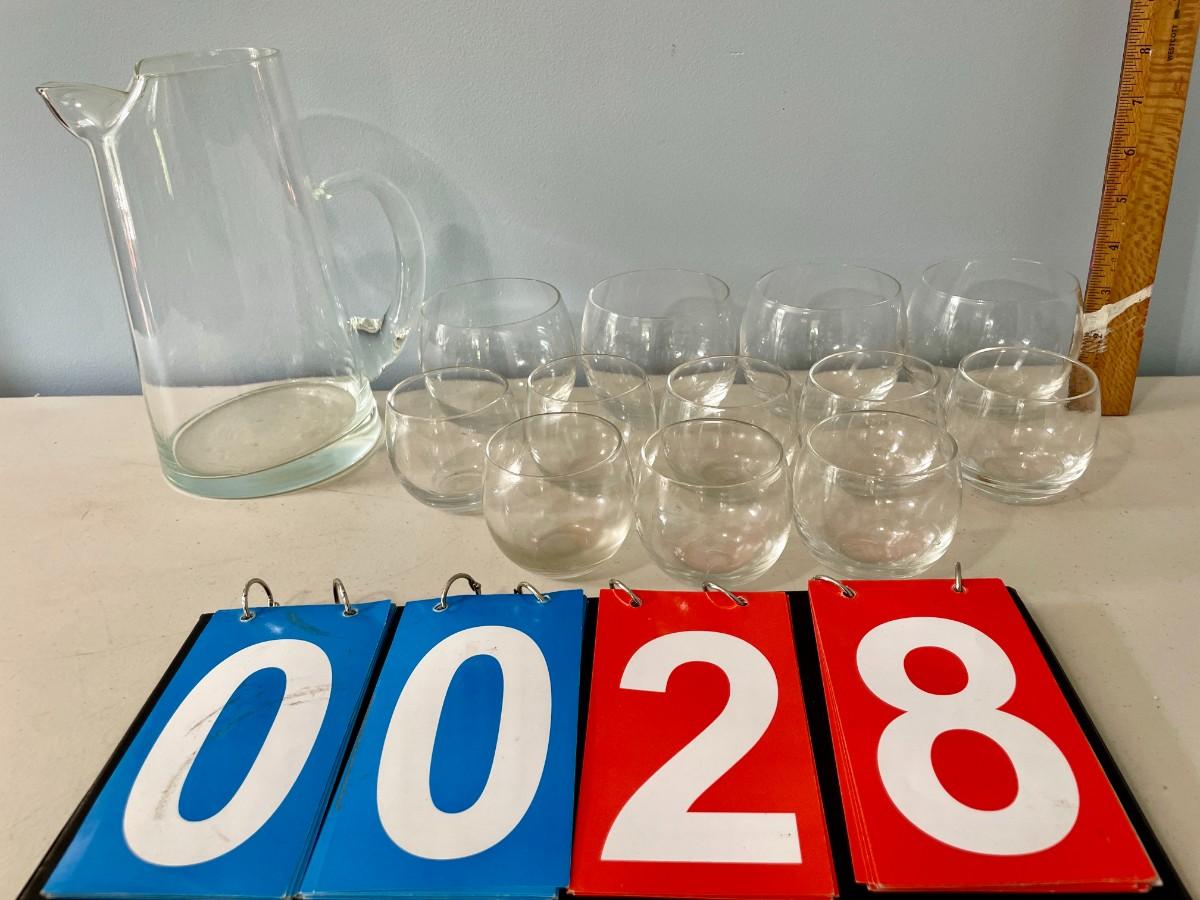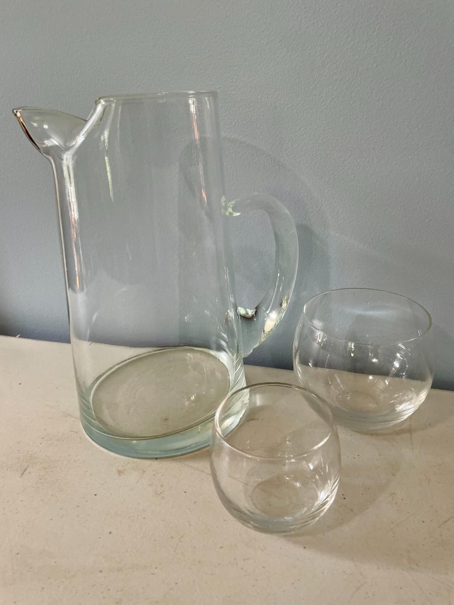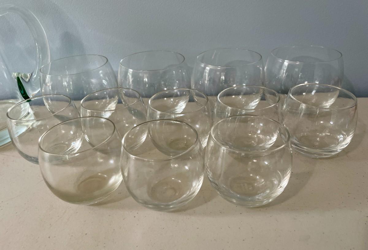 Set of 12 vintage round cocktail/wine glasses + pitcher
