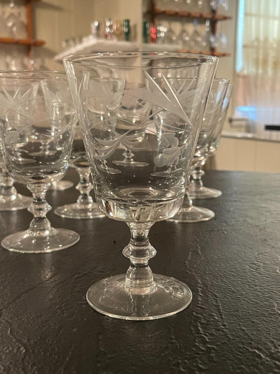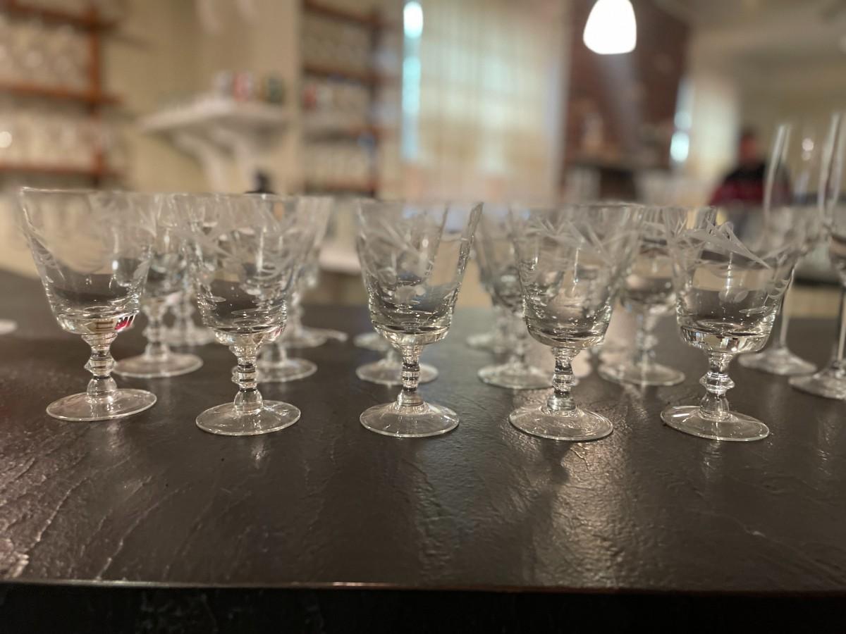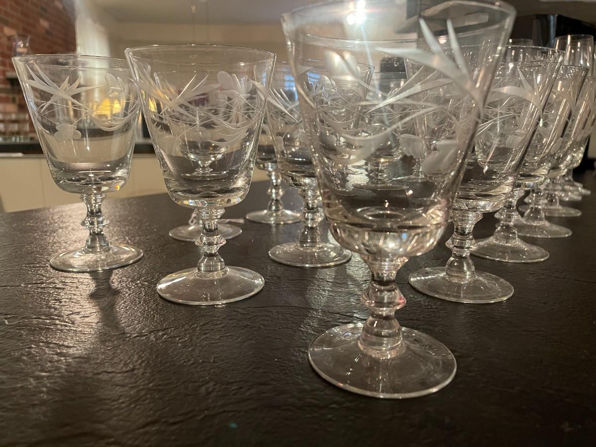Set of 15 Vintage Etched Wine Goblets