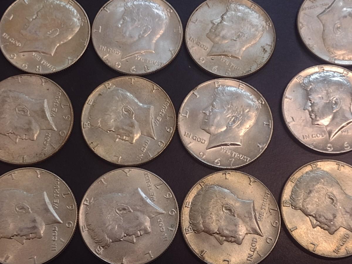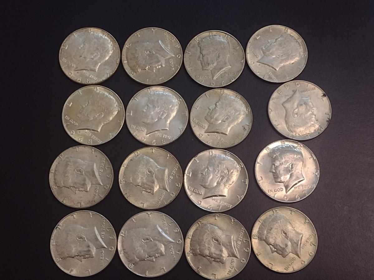 Set of 16 1965-1969 U.S. Mint Kennedy 40% Silver Half Dollars Circulated (39)