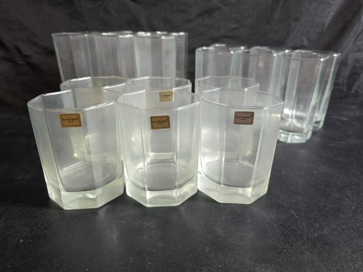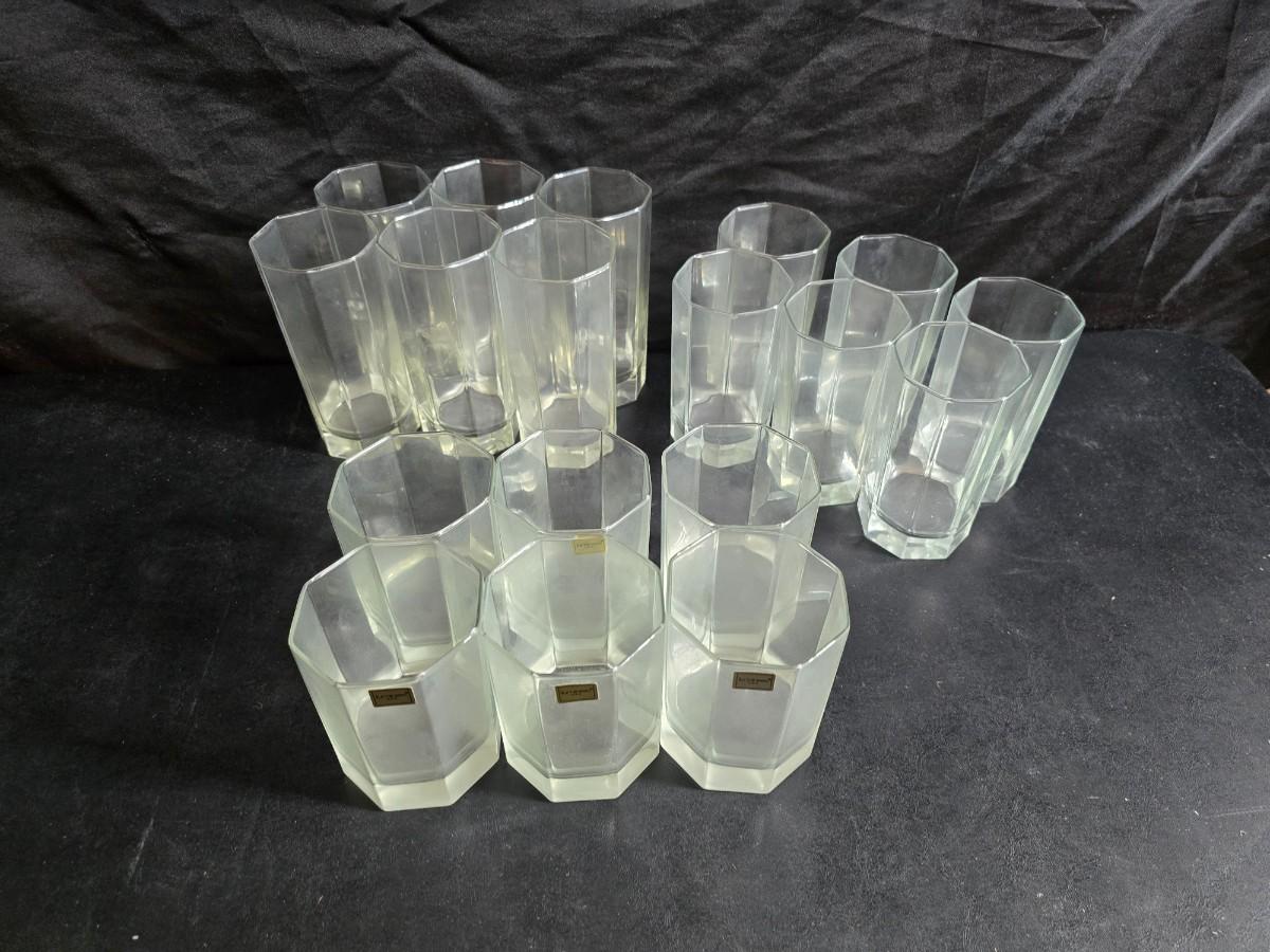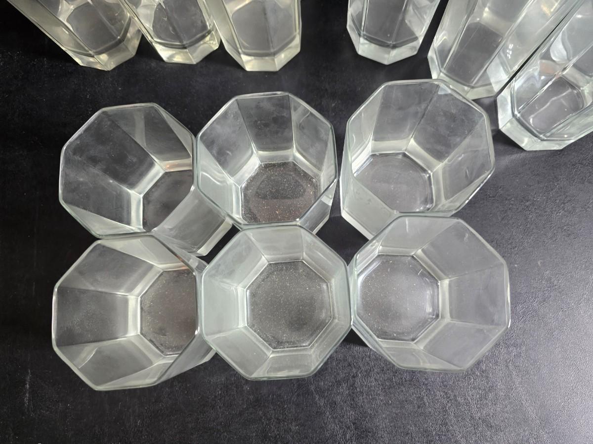 Set of 16 vintage Luminarc Octime octagonal drinking glasses - 6 of each size