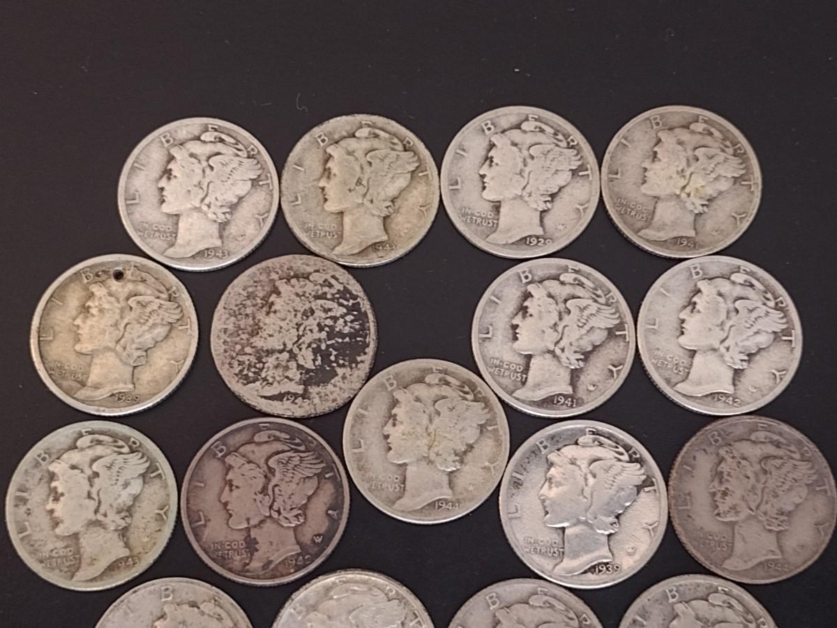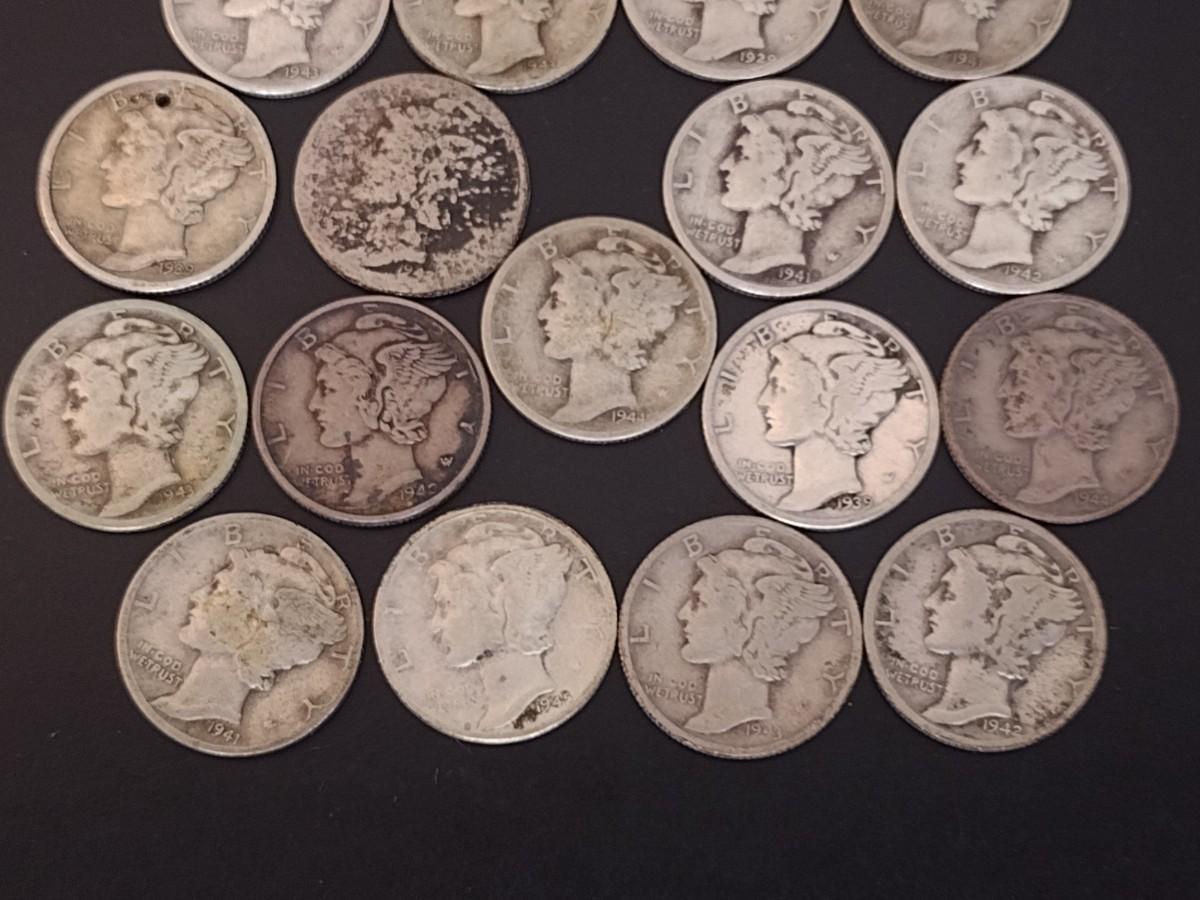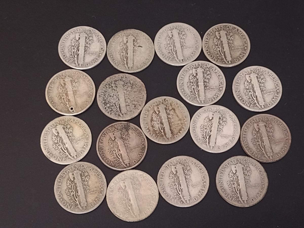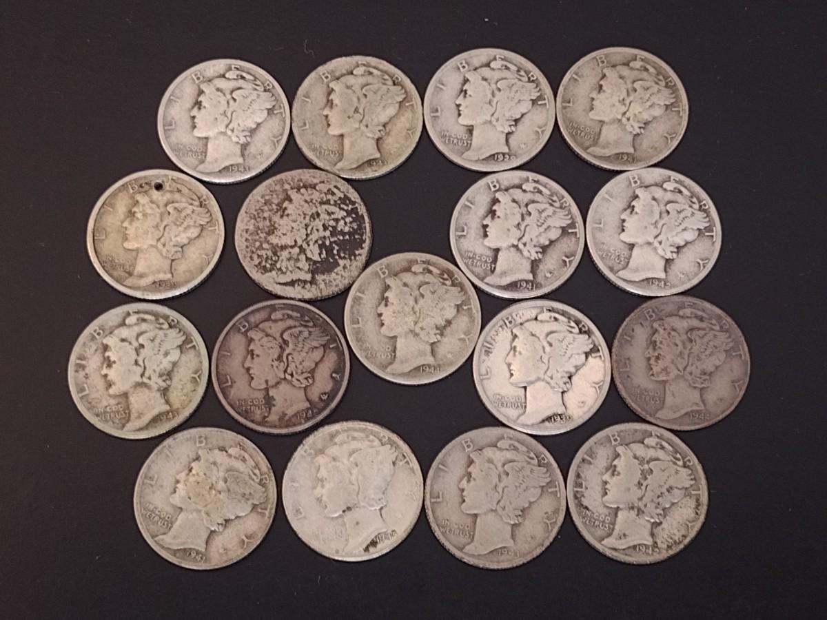 Set of 17 U. S. Mint Mercury Head Silver Dimes Circulated (#7) Various Dates