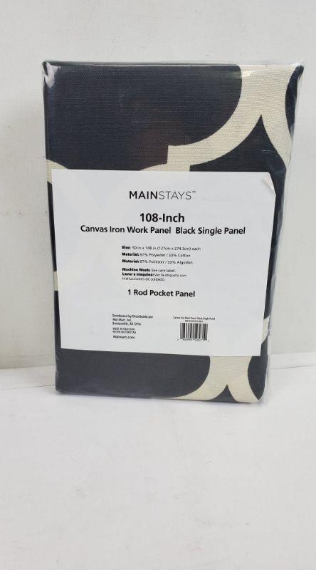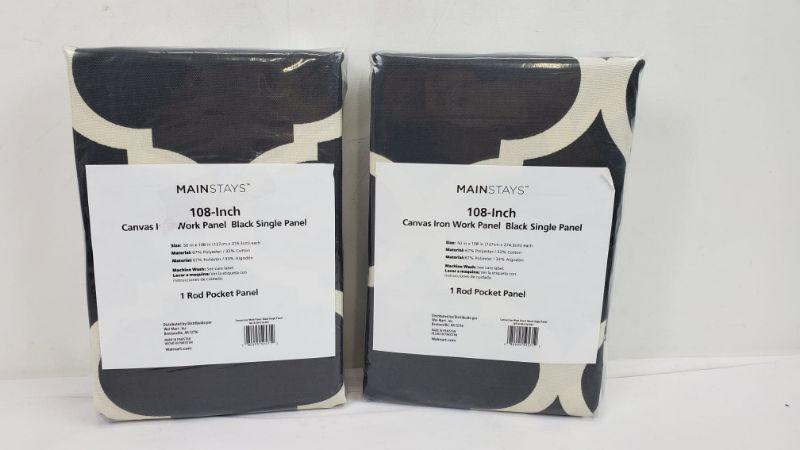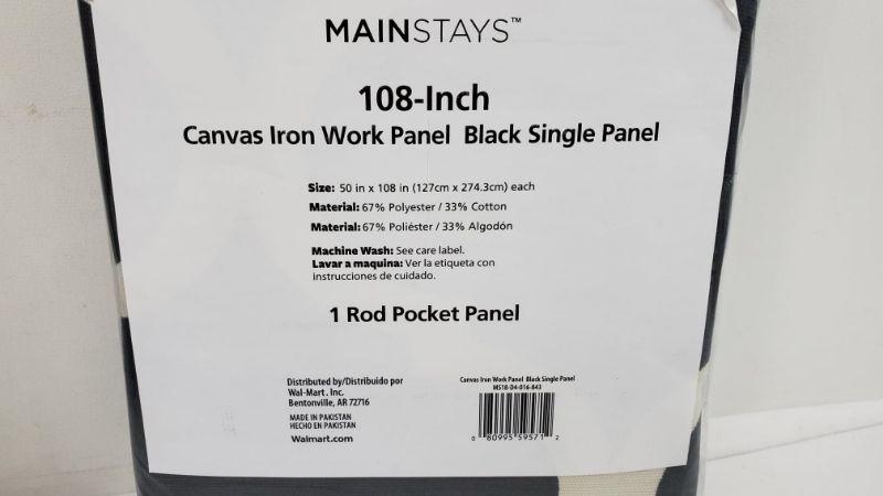 Set of 2 108 inch. Black Canvas Iron Work Panel, Rod Pocket Panels - New