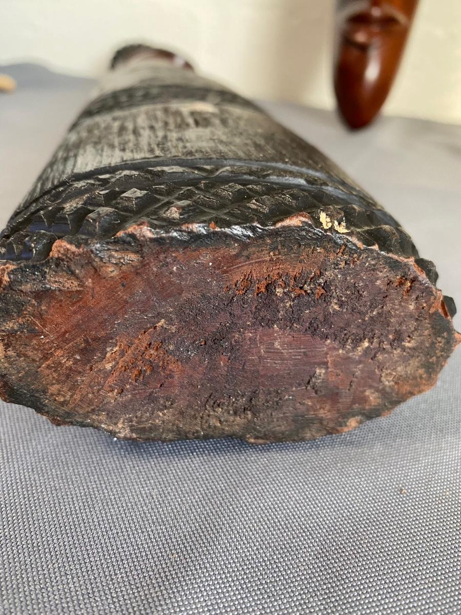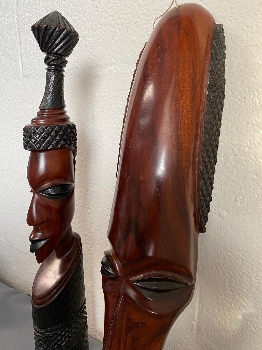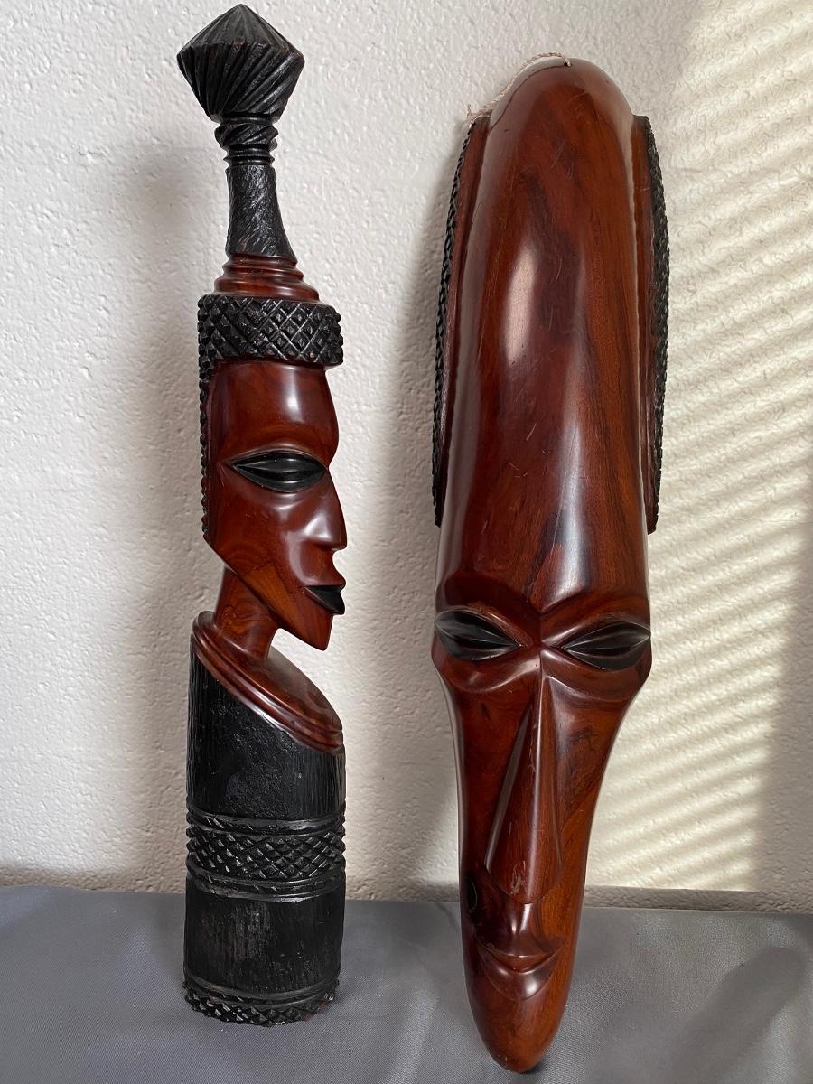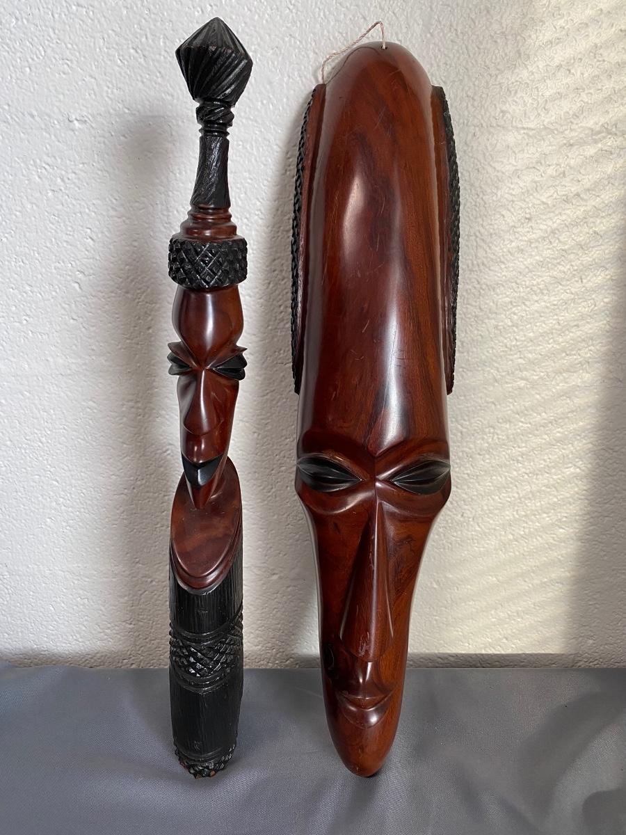Set of 2, African Wooden 22" Hanging Mask and 21" Table Sculpture