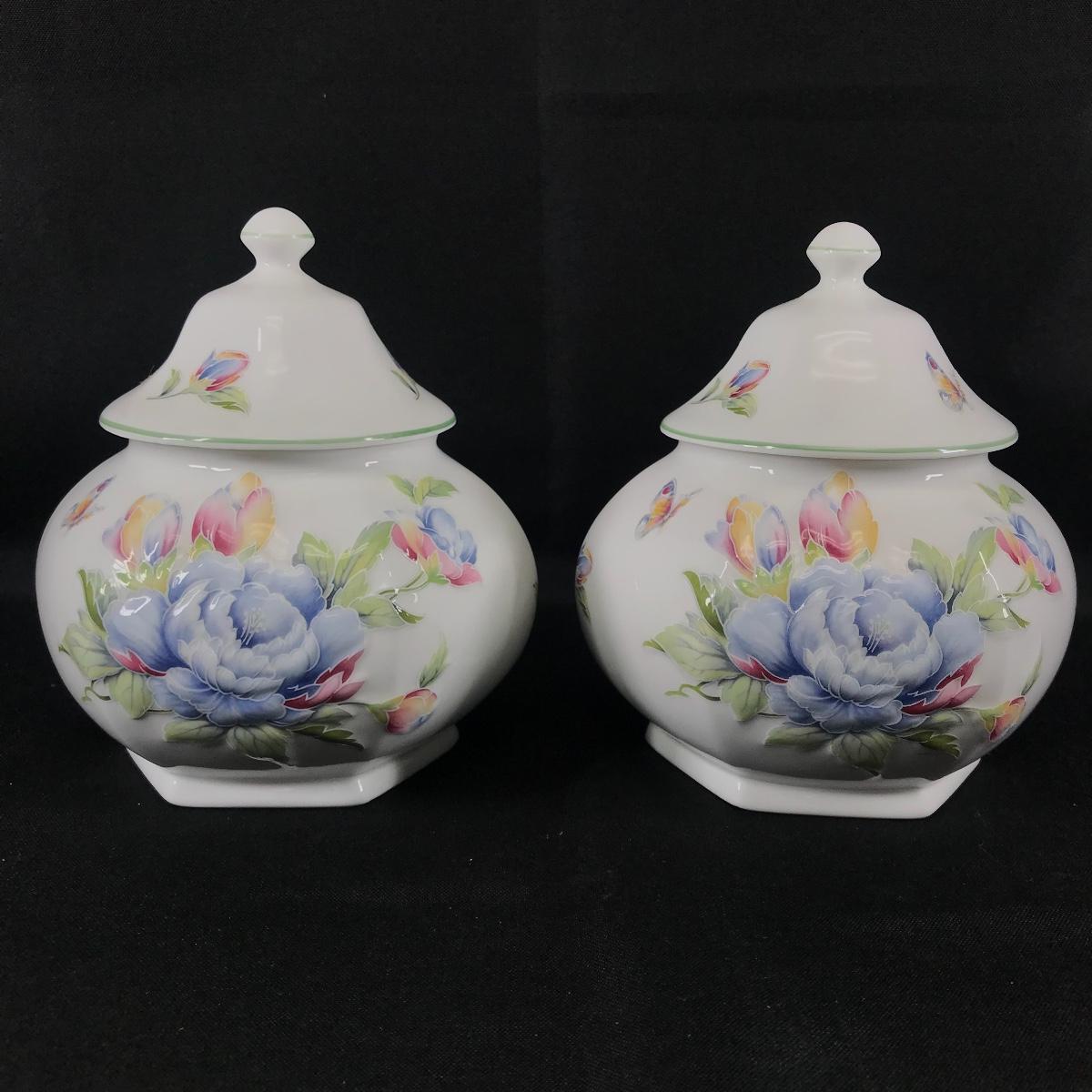 Set of 2 Aynsley Bone China Celeste Sugar Bowls Urns Canisters with Lid