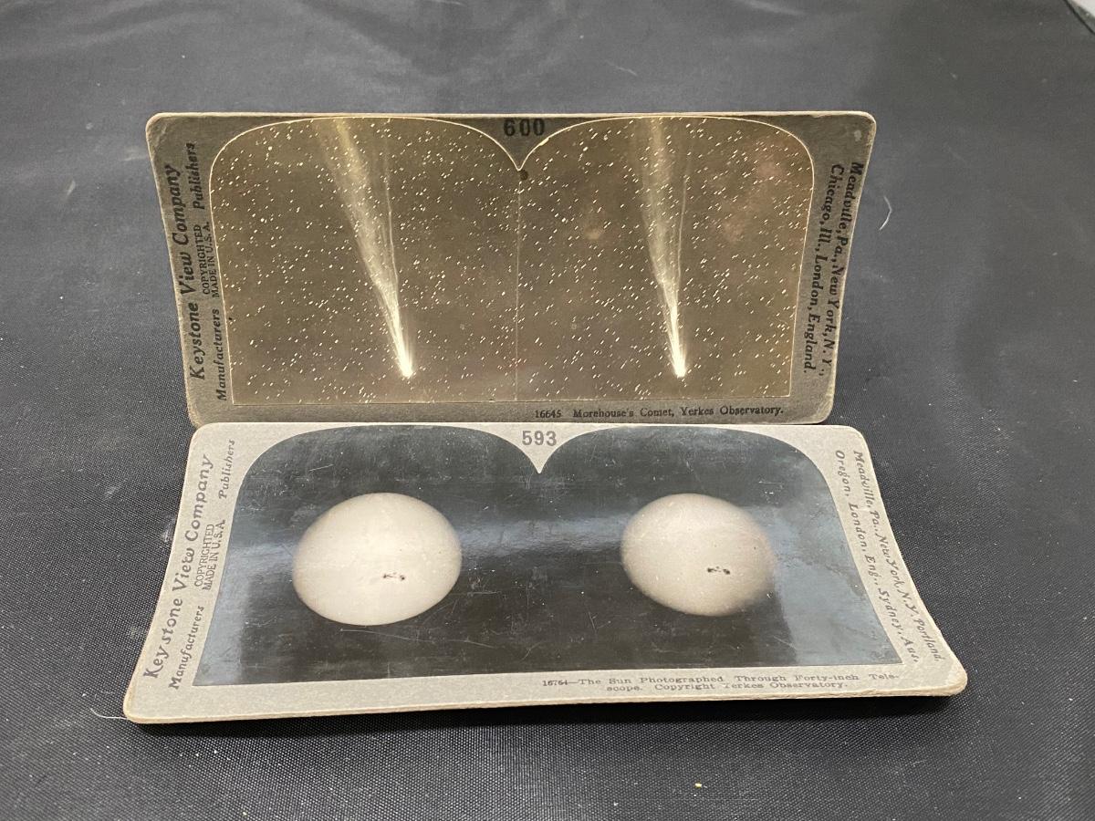 Set of 2 Antique Space Astronomy Related Stereoscope Photo Cards Morehouse's Comet Sun