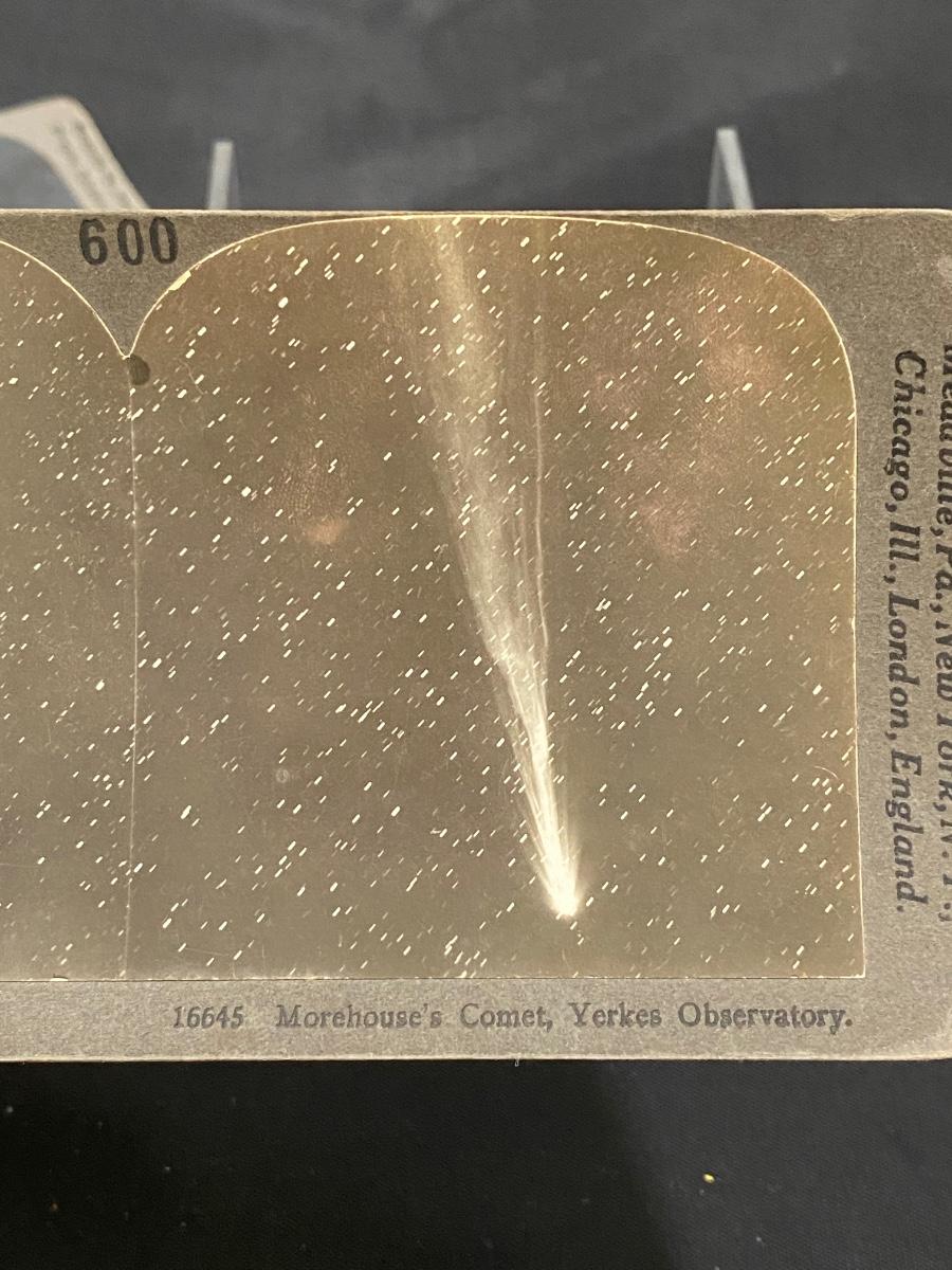 Set of 2 Antique Astronomy Related Stereoscope Photo Cards. One of the sun, the other of Morehouse's comet. Good antique condition.